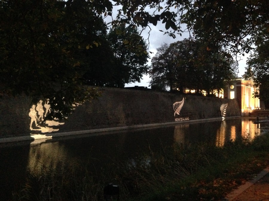 Maori waka omn the moat outside the walls of Ypres