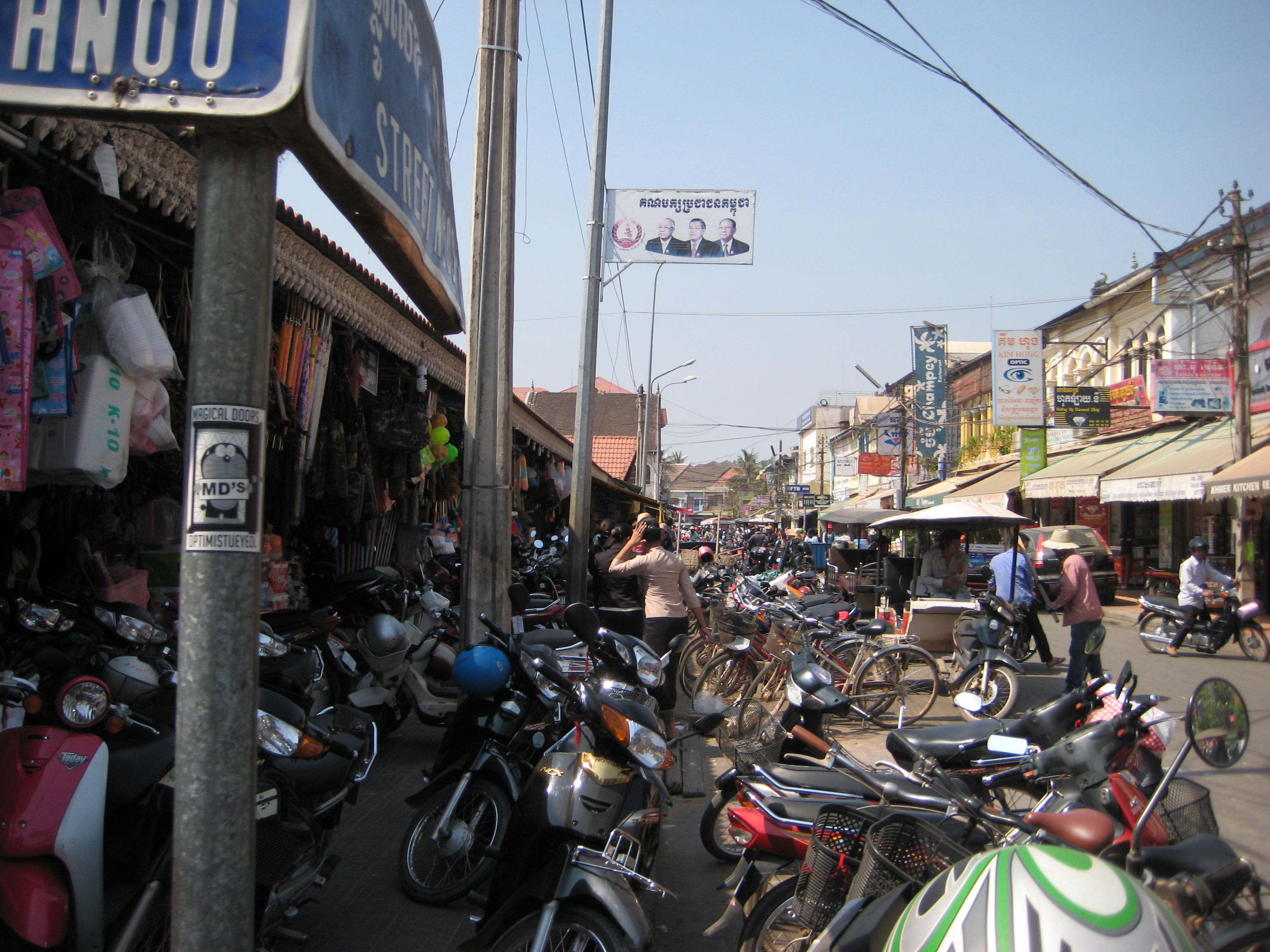 Day 1: I had the chance to explore the town of Siem Reap on my own and acclimatise to the motor-scooter & tuk-tuk traffic chaos of Cambodian streets, or more correctly, try to survive it in one piece while attempting to cross the road. I took the chance to wander around the Psar Chass (Old Market) and hunt for some presents for friends back home. End up finding some oil-paintings for myself. By late afternoon the leg was beginning to swell so armed with some local Cambodian beer I retired to the hotel to put the leg up, enjoy a dip in the pool, and a nice cold one! The evening was spent investigating the Cambodian night-life and sampling the local cuisine. A quiet day in all. Good preparation for the intensive days ahead exploring the Angkor area.