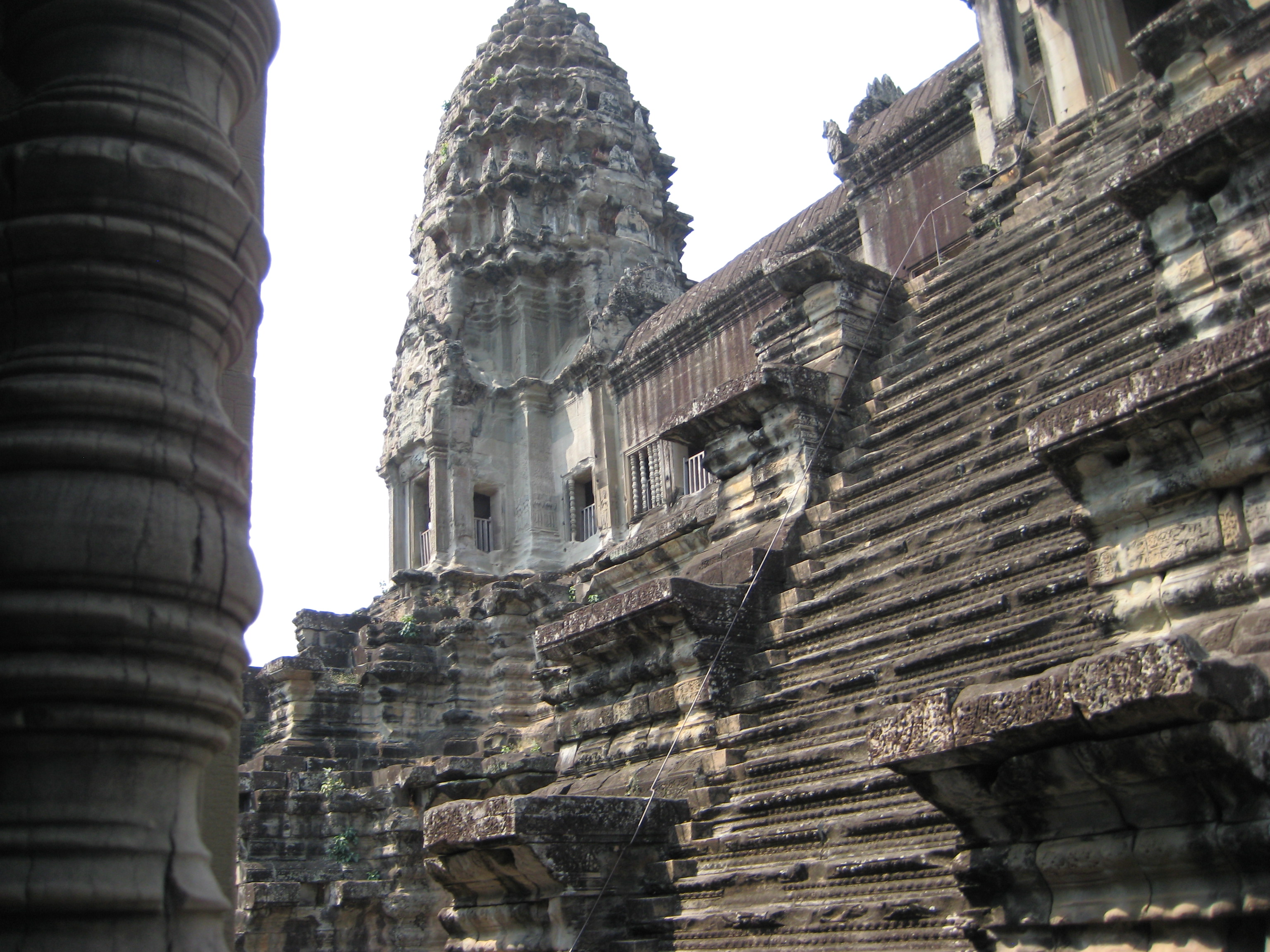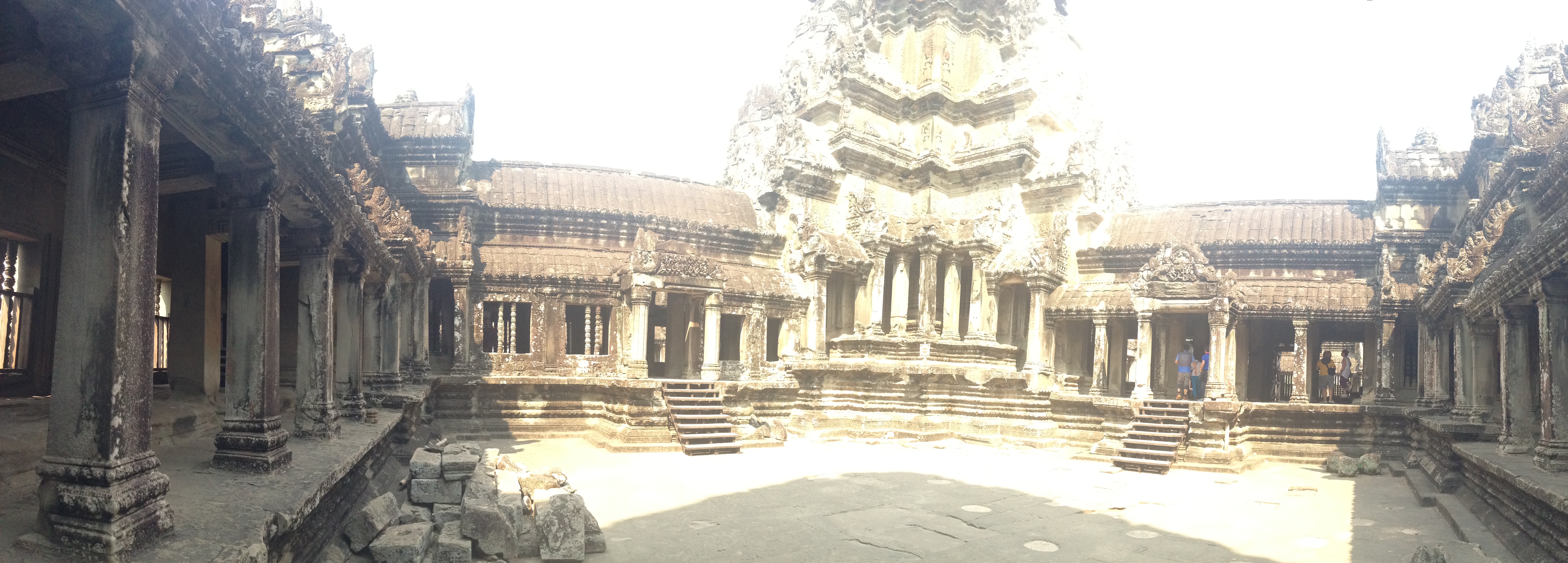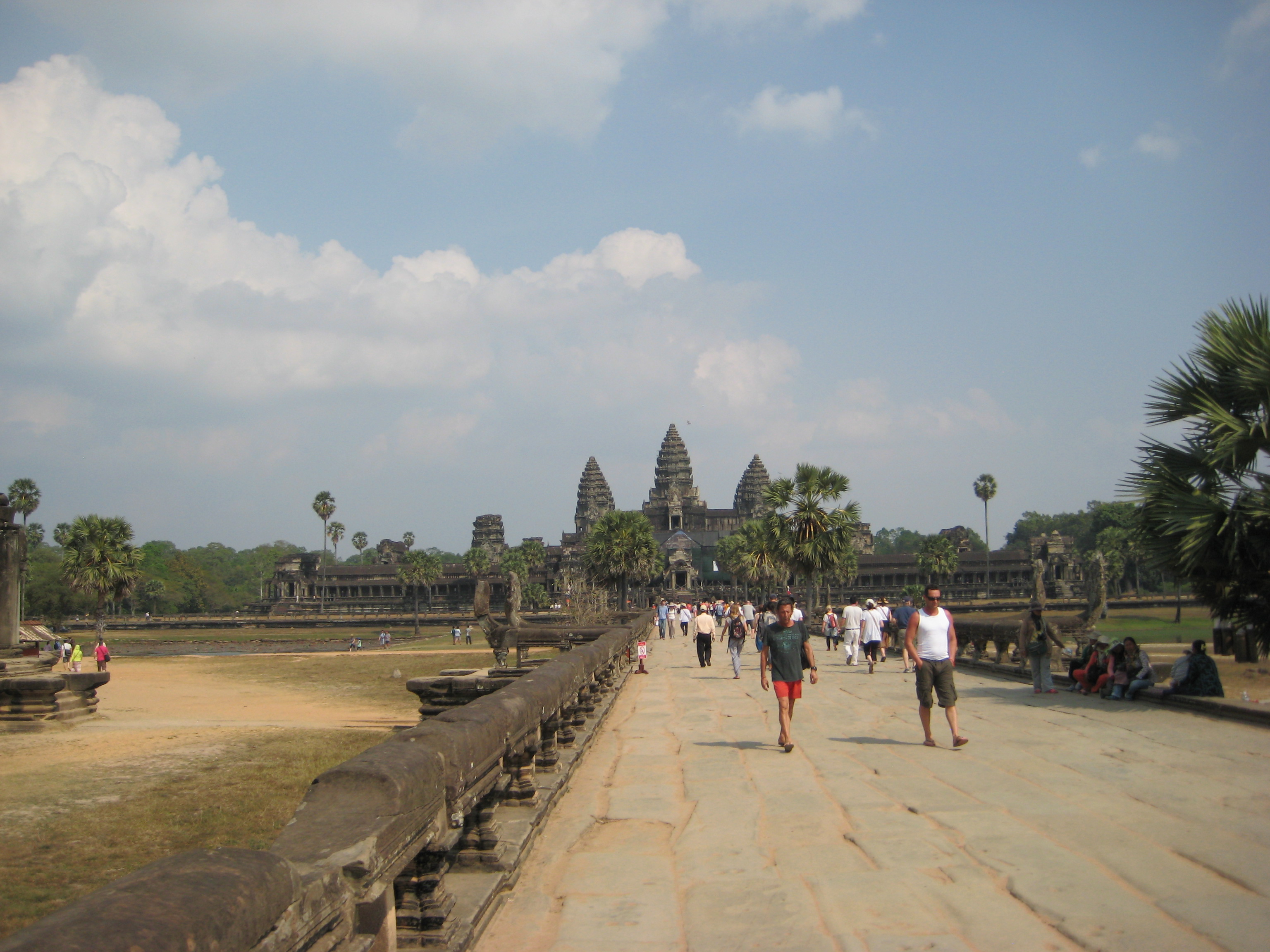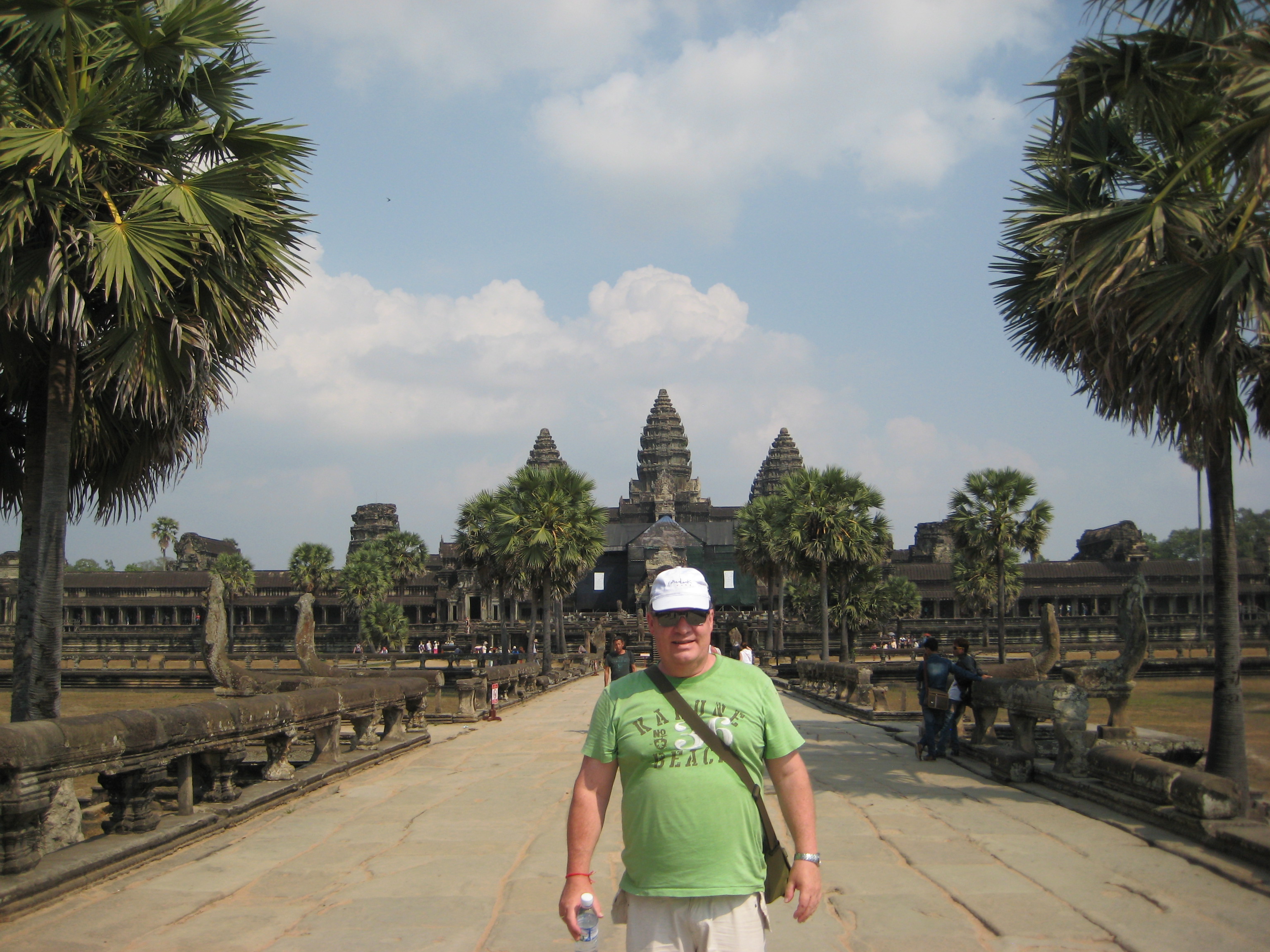 Lunch was followed by what we all come to see! Angkor Wat! The big temple! It is the largest religious building in the world covering 6 sq km (2.3 x 2.6). Built between the 9th & 12th centuries, it was first Hindu and later Buddhist before being conquered in 1430. It lay abandoned and forgotten for almost 400 years before being rediscovered by the French and since then it has been retrieved from the jungle and slowly restored. The 5 central towers in perfect symmetry pay homage to the architectural achievements and perfection the Khmer people achieved nearly a millennium ago, and the quality of construction that has left it so intact after 4 centuries of neglect. Something modern builders should learn a lesson from. Crossing the moat and arriving at the west gate (accessed only by private tours), Meas & I wandered the 2.6 km through the temple area, visiting the centre and climbing to the highest point, before continuing on to the east gate, and across the giant causeway. The impact of Angkor Wat can only be experienced by being there and I am sure it is unique for each and everyone of us. For me, it was simply – big & beautiful! That may sound so little, but my words just simply cannot match its size and impact it had on me! Meas then proceeded to say, “if your love it in the daylight, wait until tomorrow, when I bring you to watch the sunrise above it!”