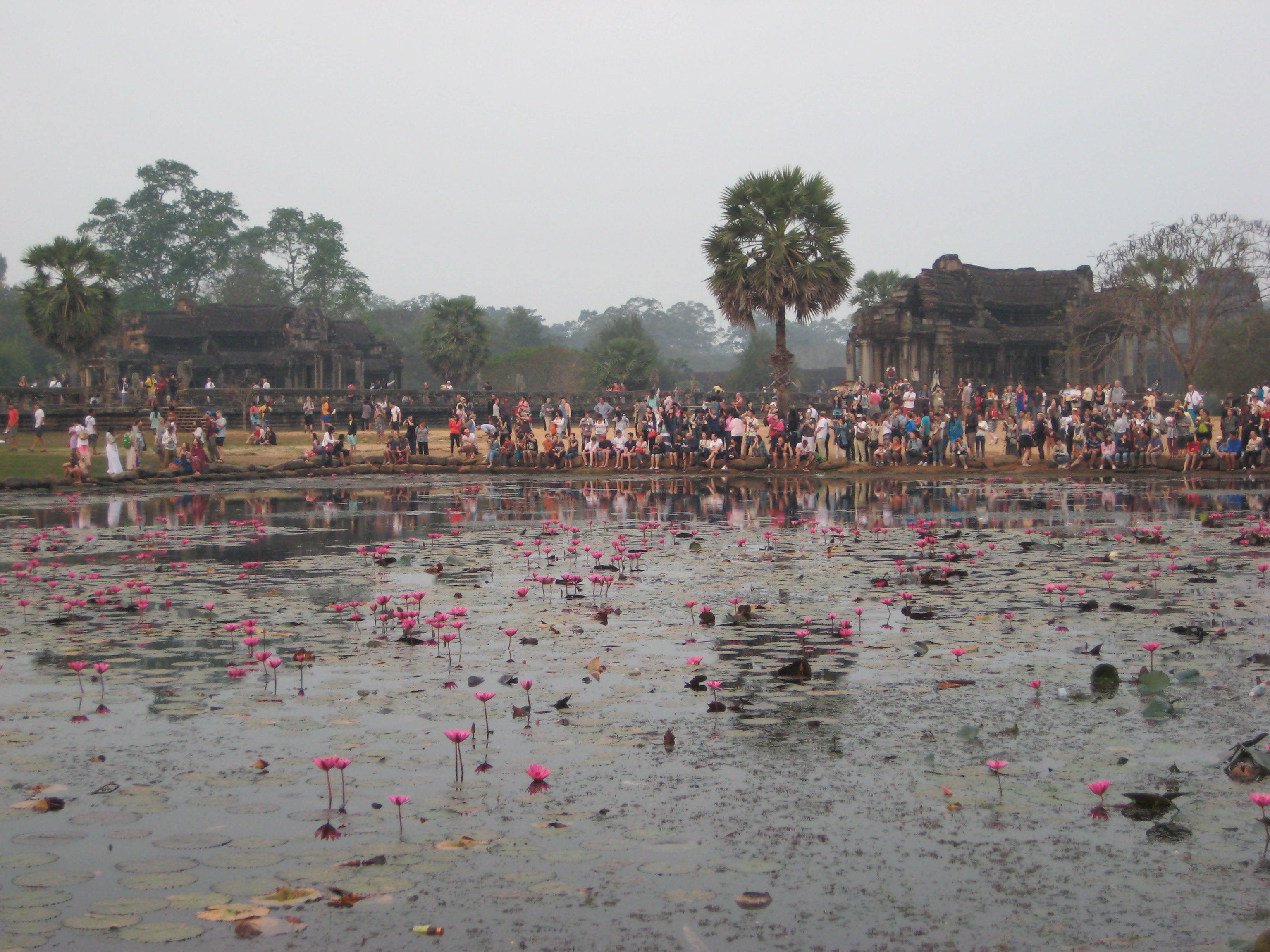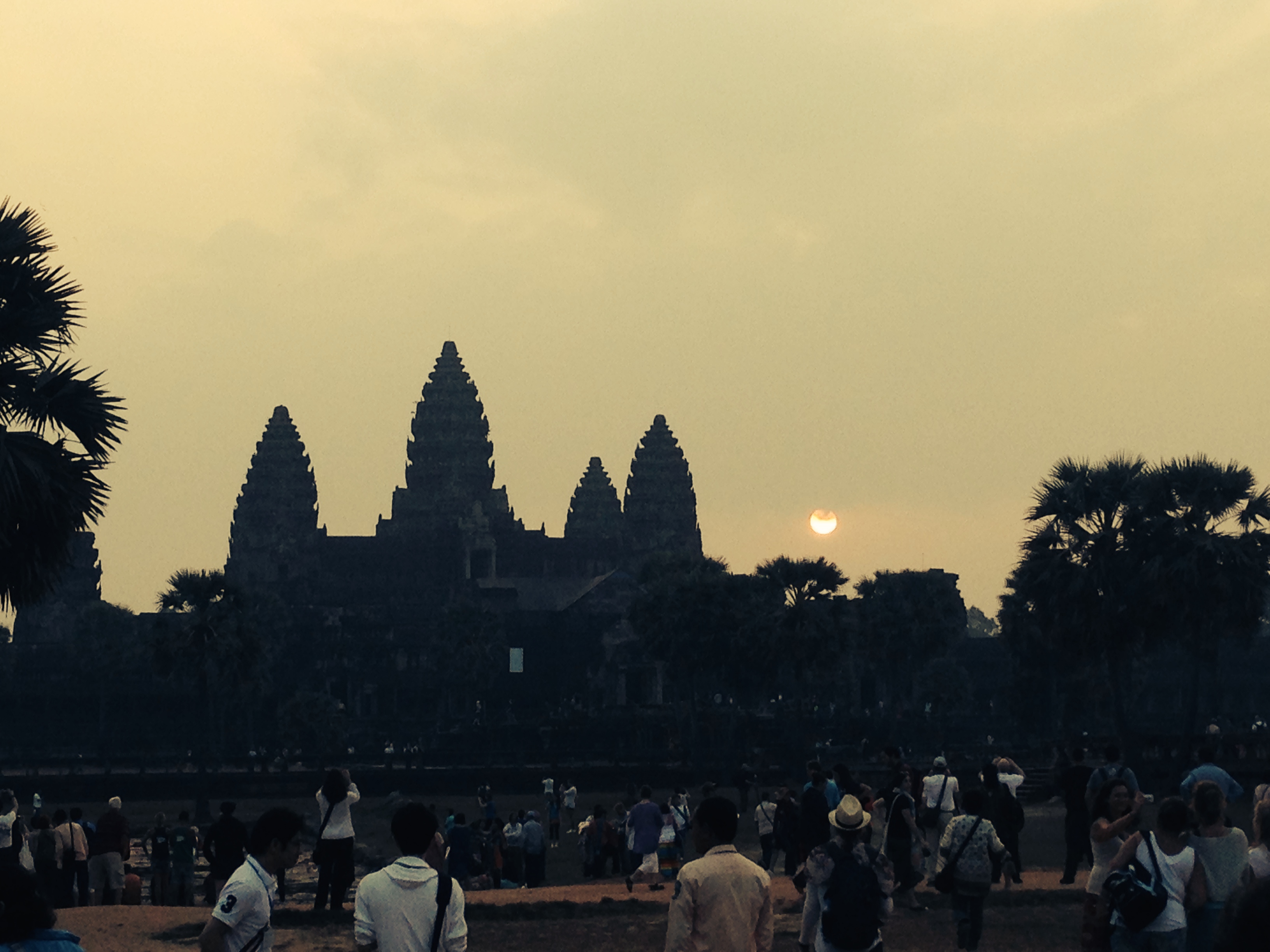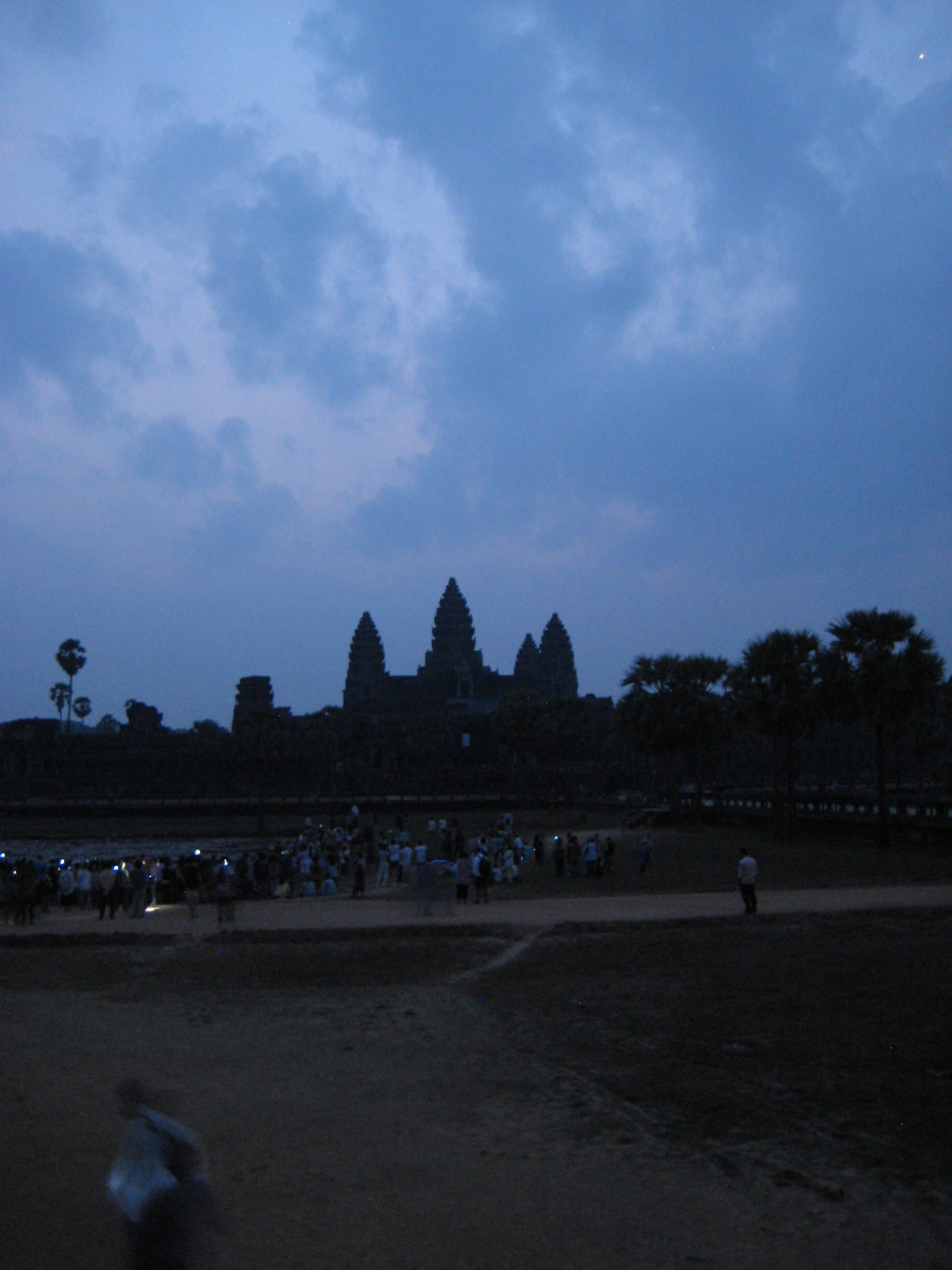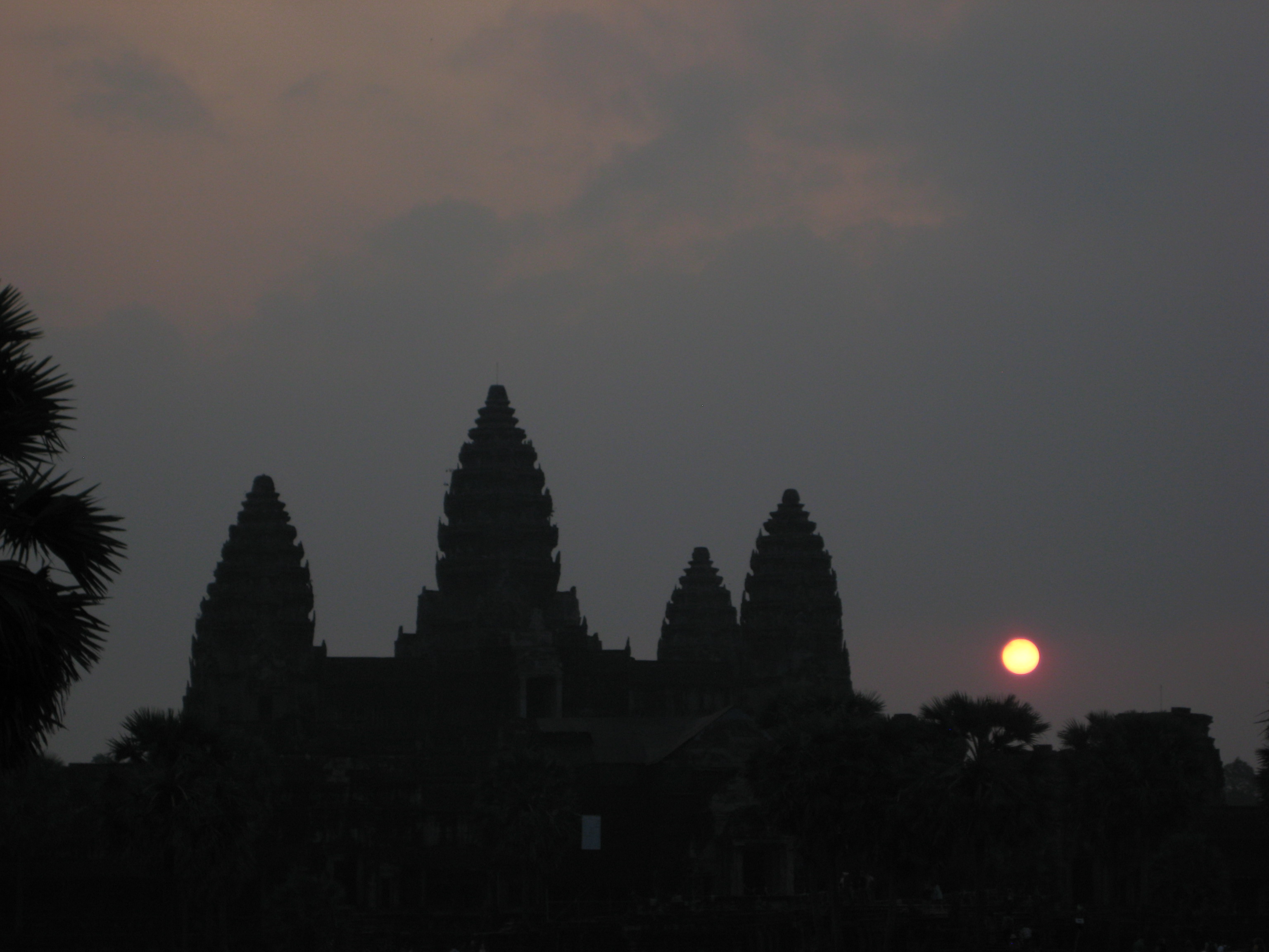 I dragged myself from my bed around 4.45am (an ungodly hour) and prepared myself as best I could at that hour for my 5.15am pickup and trip to Angkor Wat to watch the sun come up. I can inform you that it is true that you can’t see your hand in front of your face at night in the jungle. God knows if the other 500 or so nutcases like me who got up to see the sunrise, could? Anyway, none of us fell in the moat or broke any bones on the uneven stone causeways, and thanks to my guide I got a great spot to see it. The sunrise over the temple was spectacular, unfortunately the photos do not do it justice.