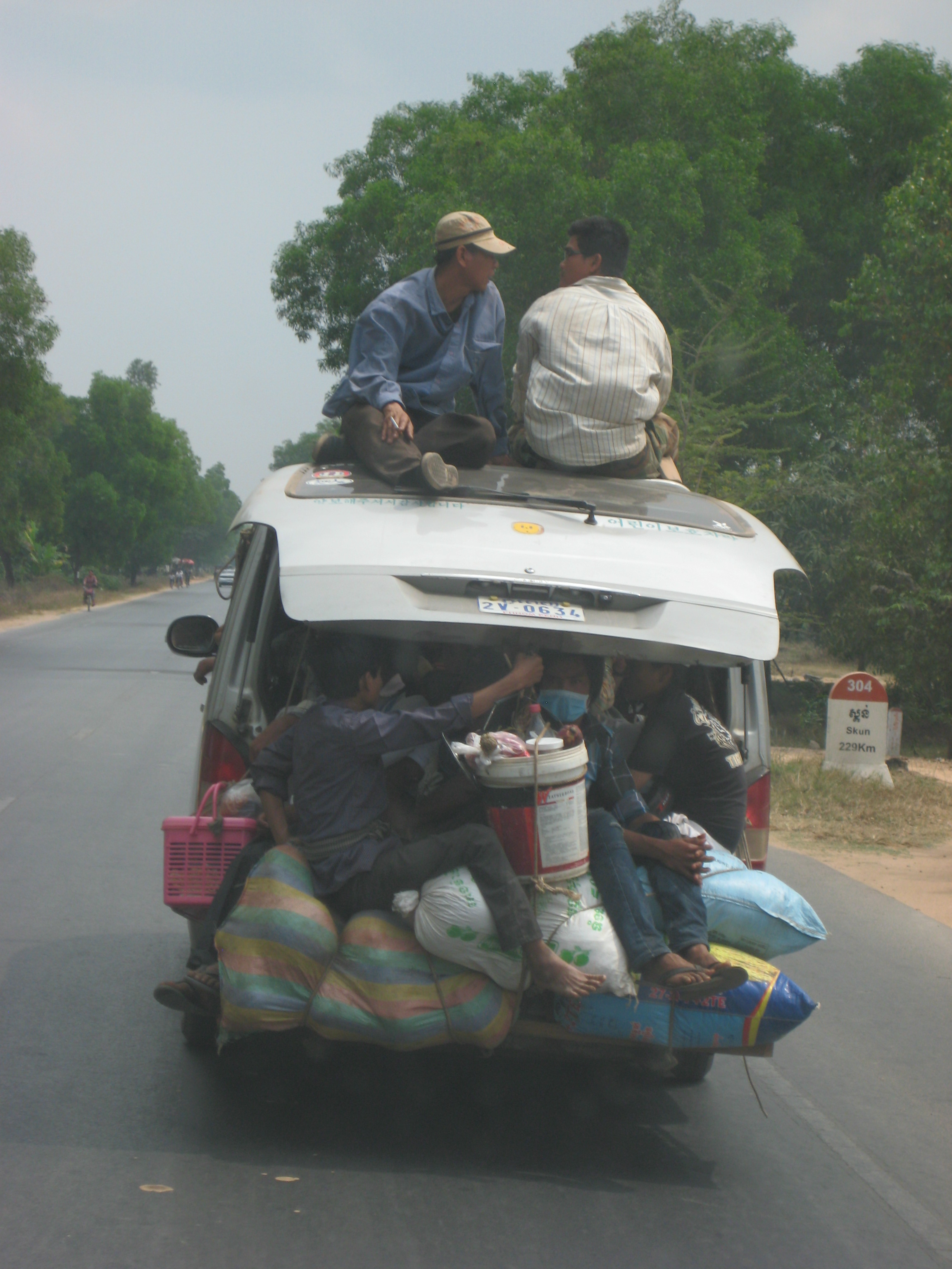 You may notice in one of the photos a way overloaded van heading down the road. This was one of the cheap local buses heading for Phom Penh. A journey of about 350 kms and about 6 hours. Bugger hanging on like that for 6 hours in Cambodian traffic and on Cambodia’s bumpy roads.