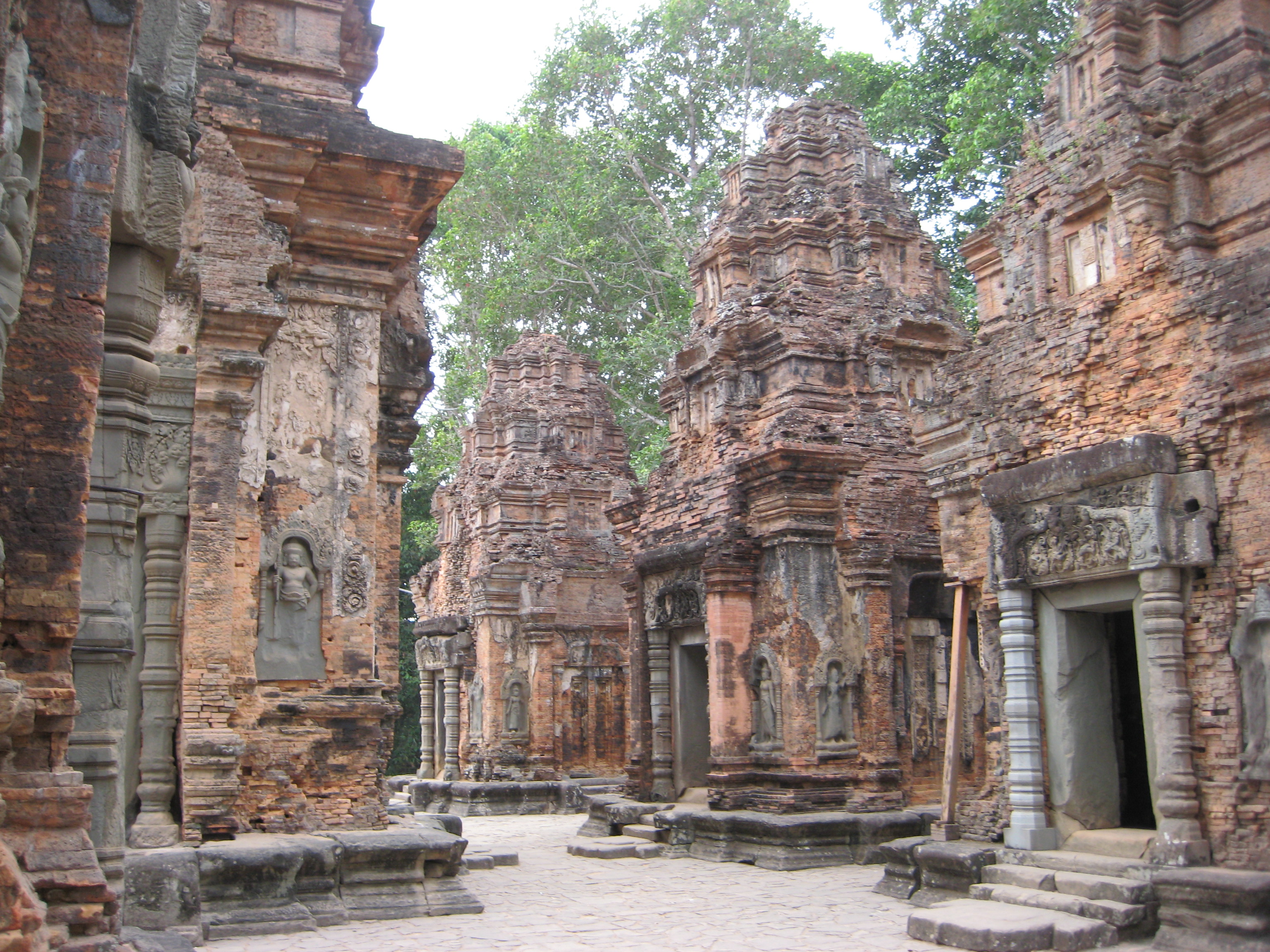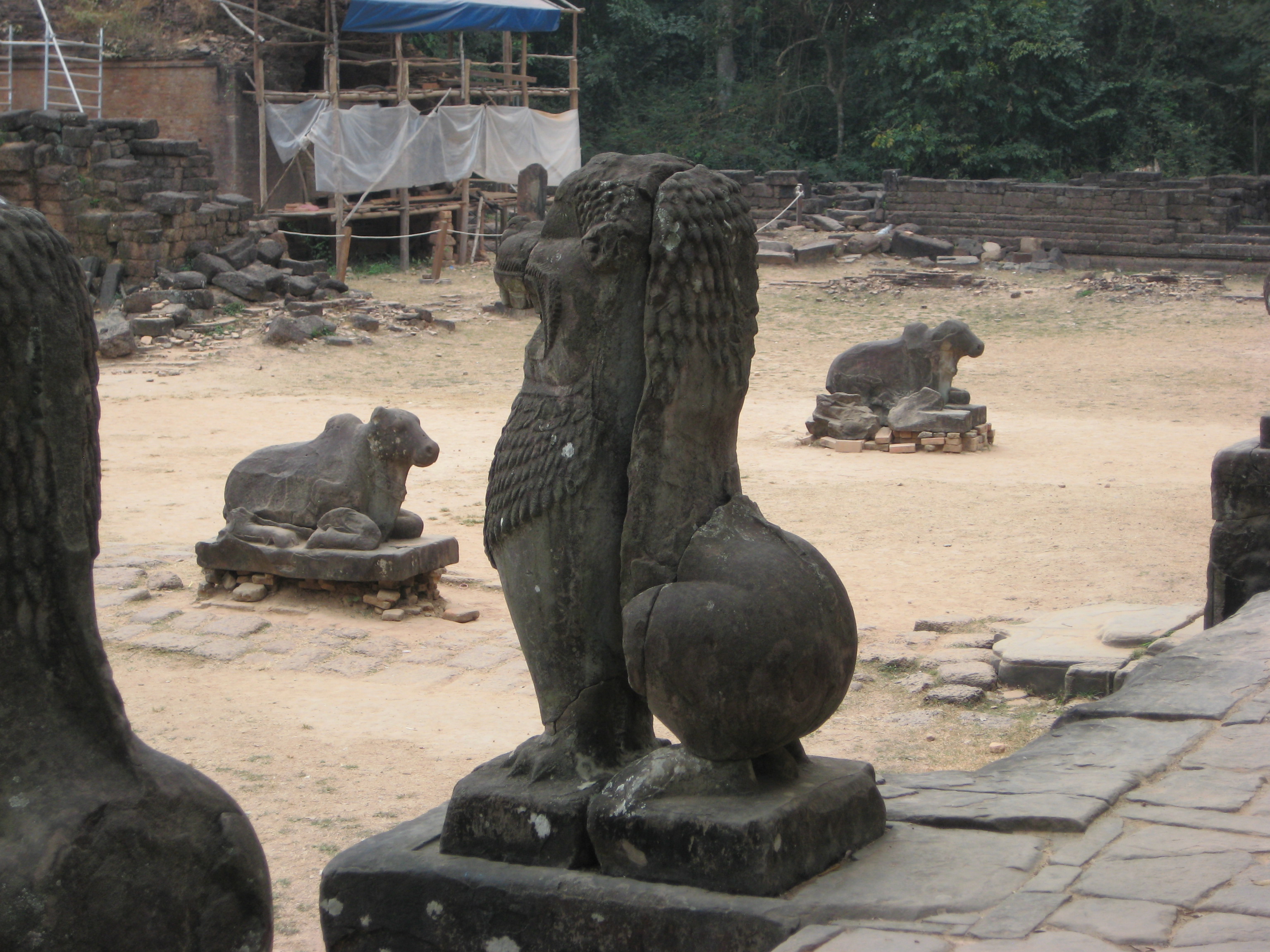 The lake provides alot of the freshwater fish for Cambodia which includes the Mekong giant catfish which can grow to 2 metres and weigh 200kgs. It is also populated by crocodiles so no swimming. From the lake we travelled to the oldest temples in the area know as the Rolous Group (b. 800) and known as the birthplace of Khmer architecture. By this time I was well and truly ready for lunch which was in a very pleasant setting outdoors overlooking one of Angkor Thom’s many reservoirs.