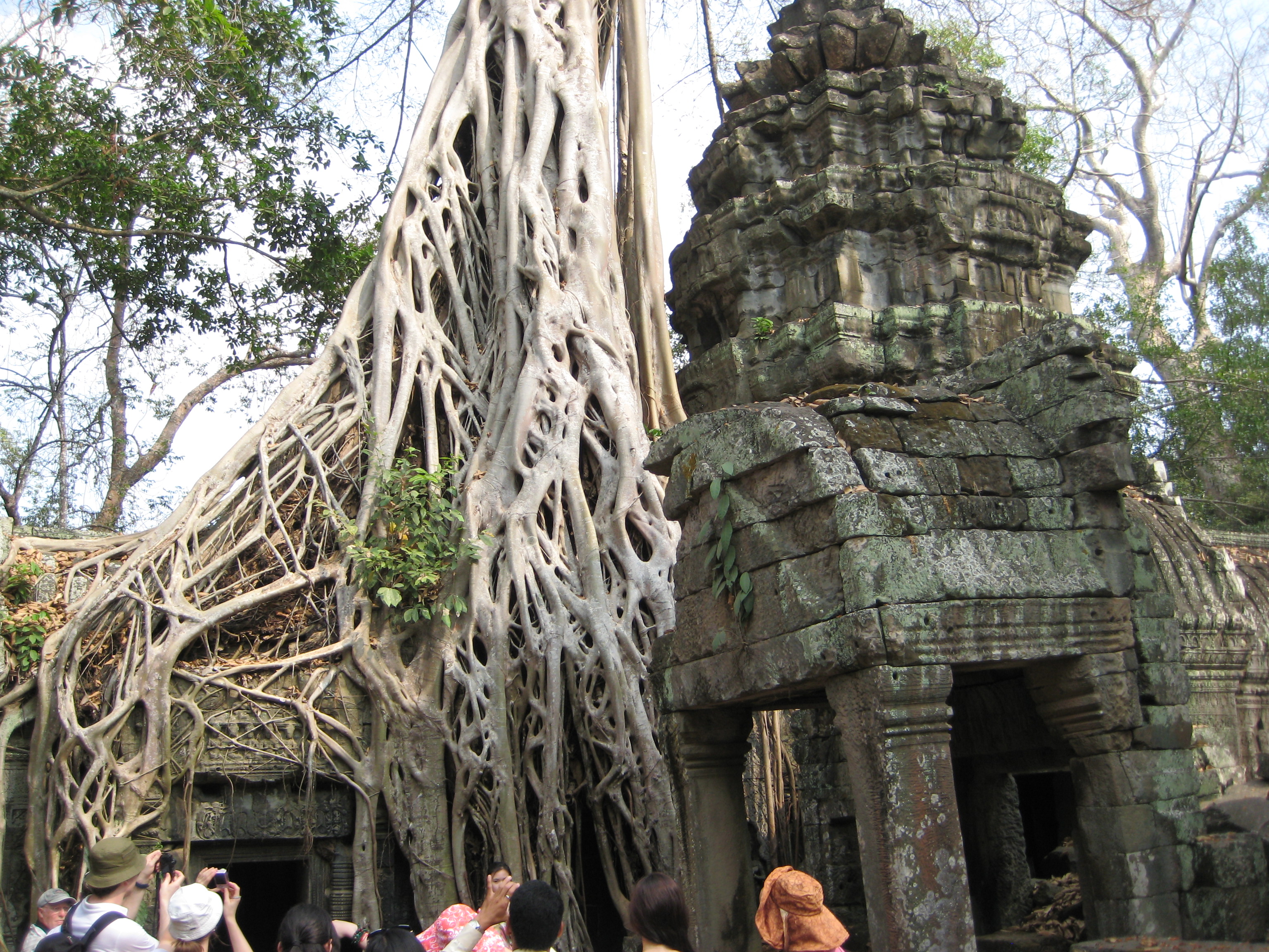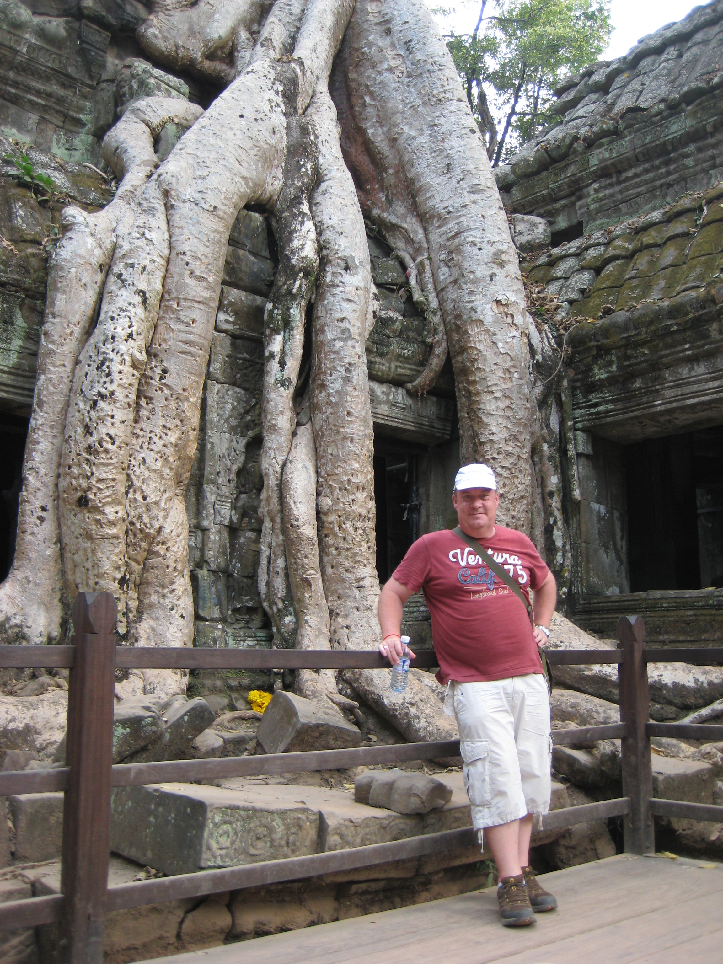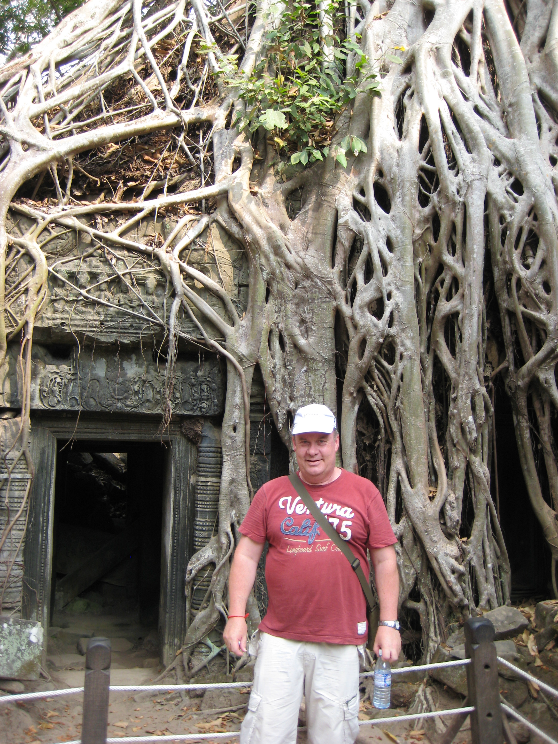 After lunch we headed to the jungle temple of Ta Prohm or better known from the film Lara Croft: Tomb Raider. Unlike most Angkor temples, Ta Prohm has been left in much the same condition in which it was found. The jungle has not been removed and the trees are growing out of the ruins. In fact the interwoven relationship between tree and stone means that in several place the trees are actually holding the temple up. It was also a very rich temple, and at the very heart is a chamber with walls filled by holes the size of golf balls. At one time these holes were filled with all types of jewels that encrusted the entire chamber. It was amazing to climb among the ruins and getting the feeling of what it must have been like to discover Angkor Wat.