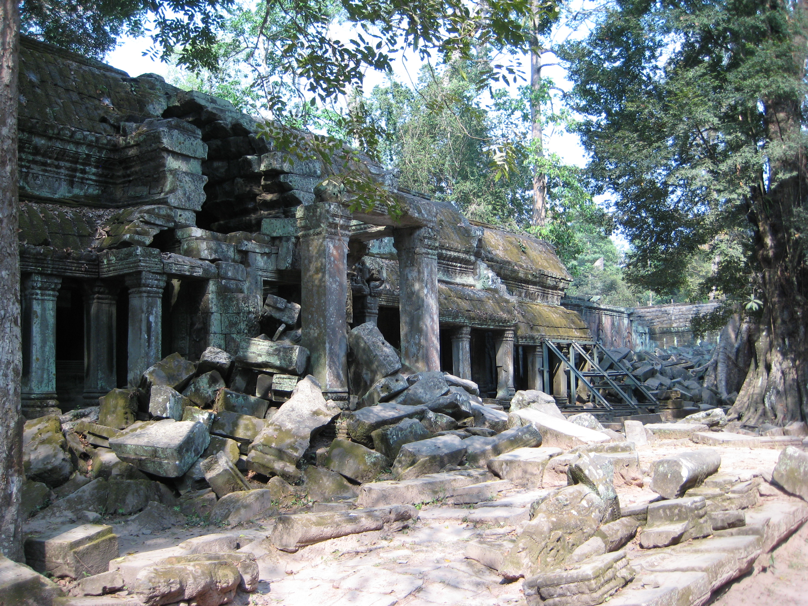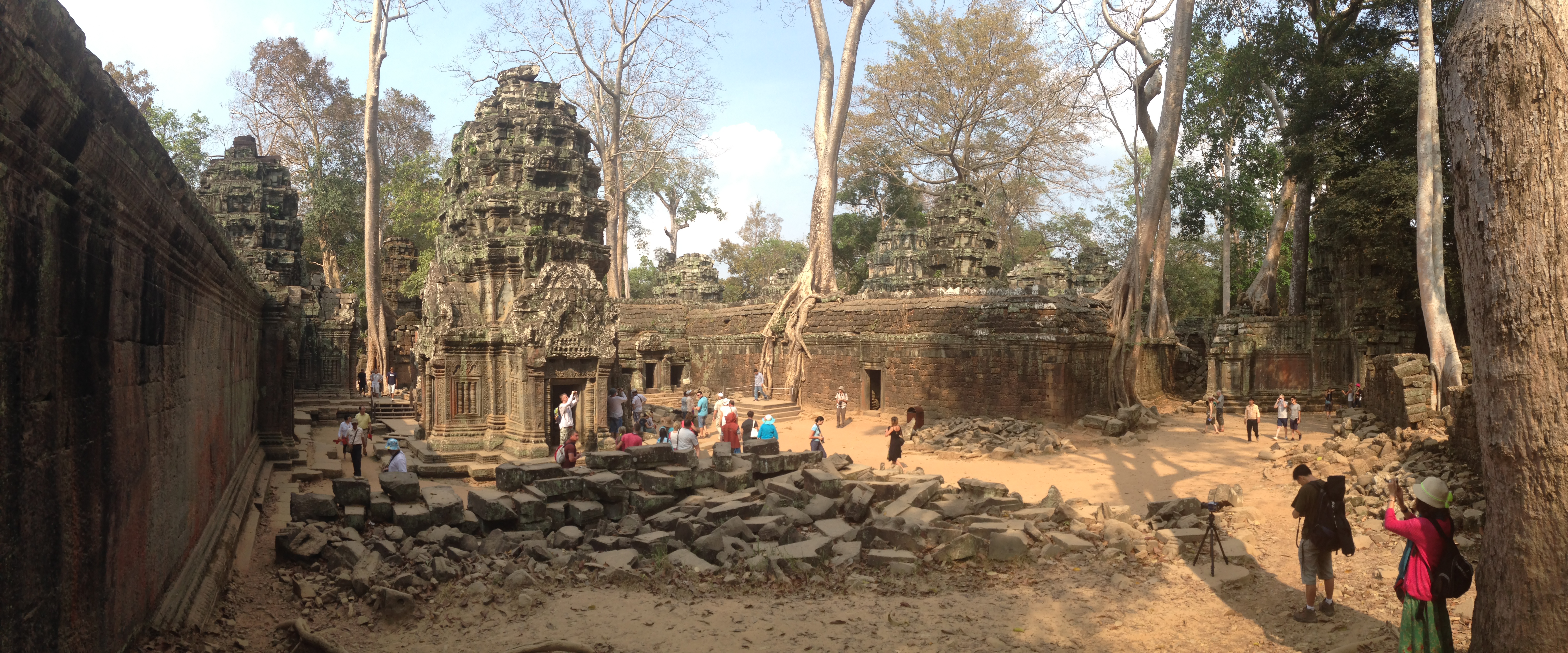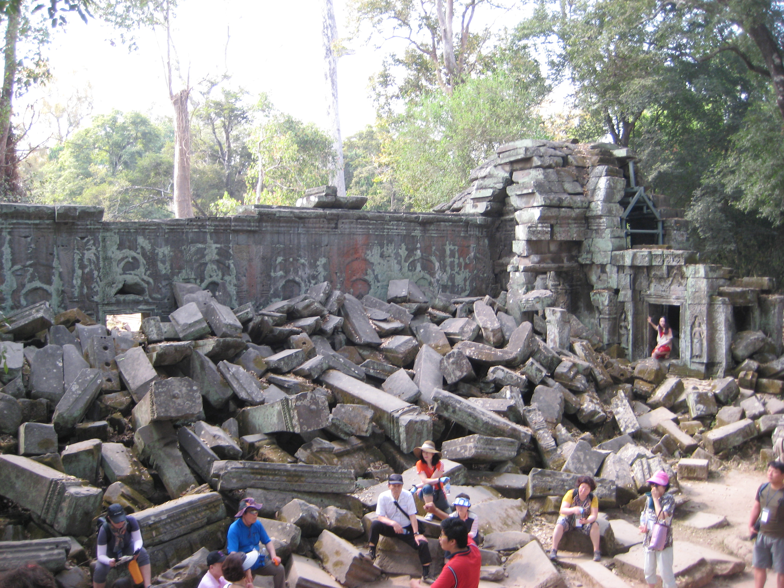 After lunch we headed to the jungle temple of Ta Prohm or better known from the film Lara Croft: Tomb Raider. Unlike most Angkor temples, Ta Prohm has been left in much the same condition in which it was found. The jungle has not been removed and the trees are growing out of the ruins. In fact the interwoven relationship between tree and stone means that in several place the trees are actually holding the temple up. It was also a very rich temple, and at the very heart is a chamber with walls filled by holes the size of golf balls. At one time these holes were filled with all types of jewels that encrusted the entire chamber. It was amazing to climb among the ruins and getting the feeling of what it must have been like to discover Angkor Wat.