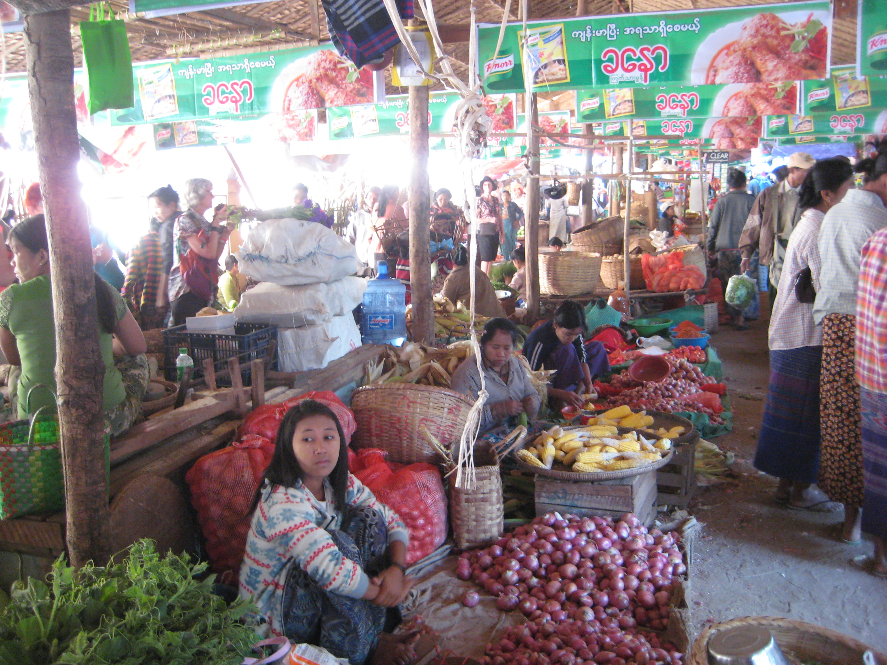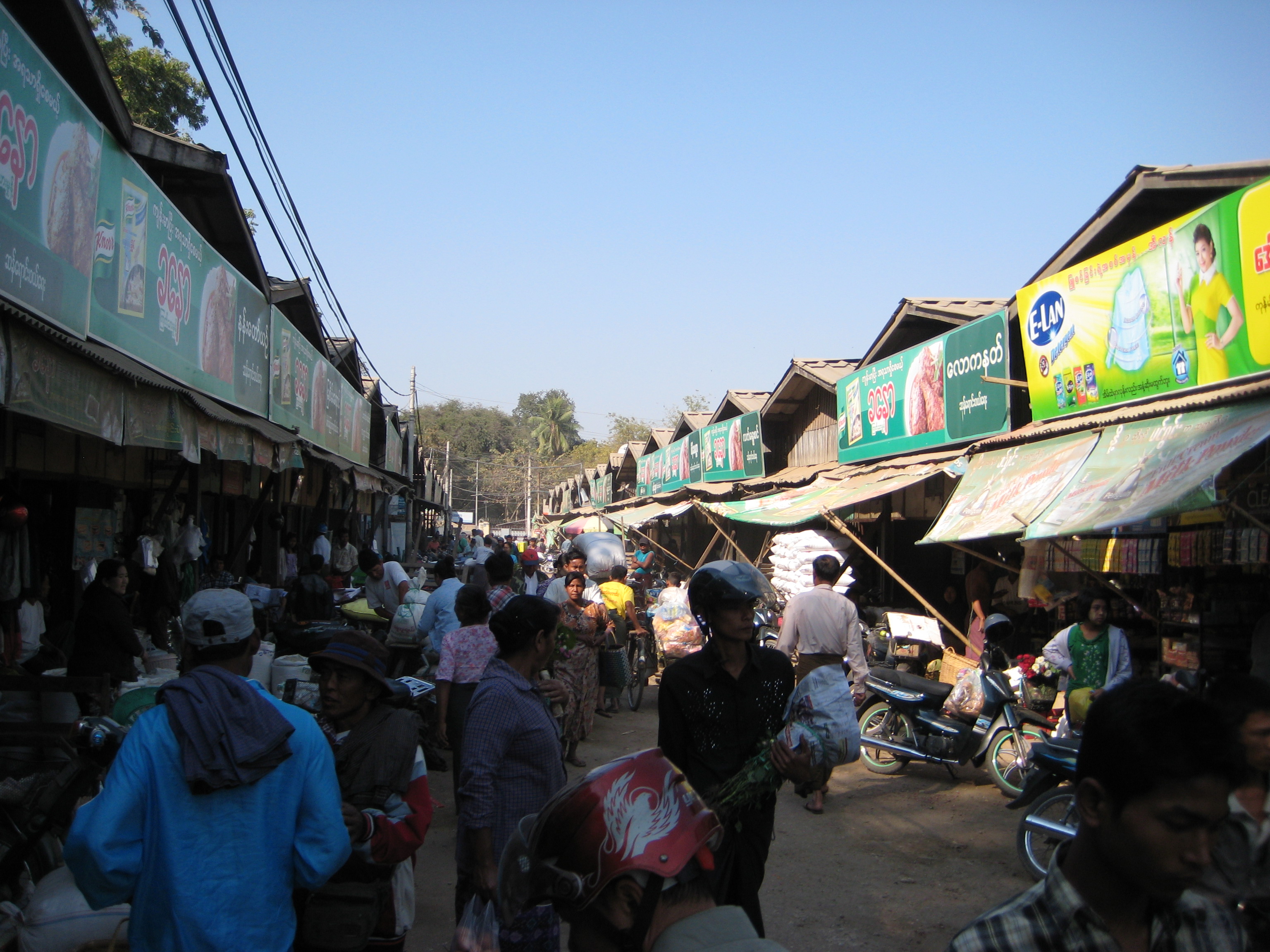 If you notice in some of the photos Burmese women are wearing a yellow substance on their cheeks. This is called Thanaka, a natural sun screen produced by grinding the bark from the tree to a very fine power mixed with oil & water. It smells beautiful and is commonly applied to the face and sometimes the arms of women & girls, and to a lesser extent, men and boys as decoration and a form of natural sun protection. The market was also the first time I encountered the squat toilet, an experience in itself and a brush with the seedier side of Burmese hygiene. An easy exercise if you are wearing a “longyi” as most Burmese men do (see below) but difficult when wearing western style apparel.