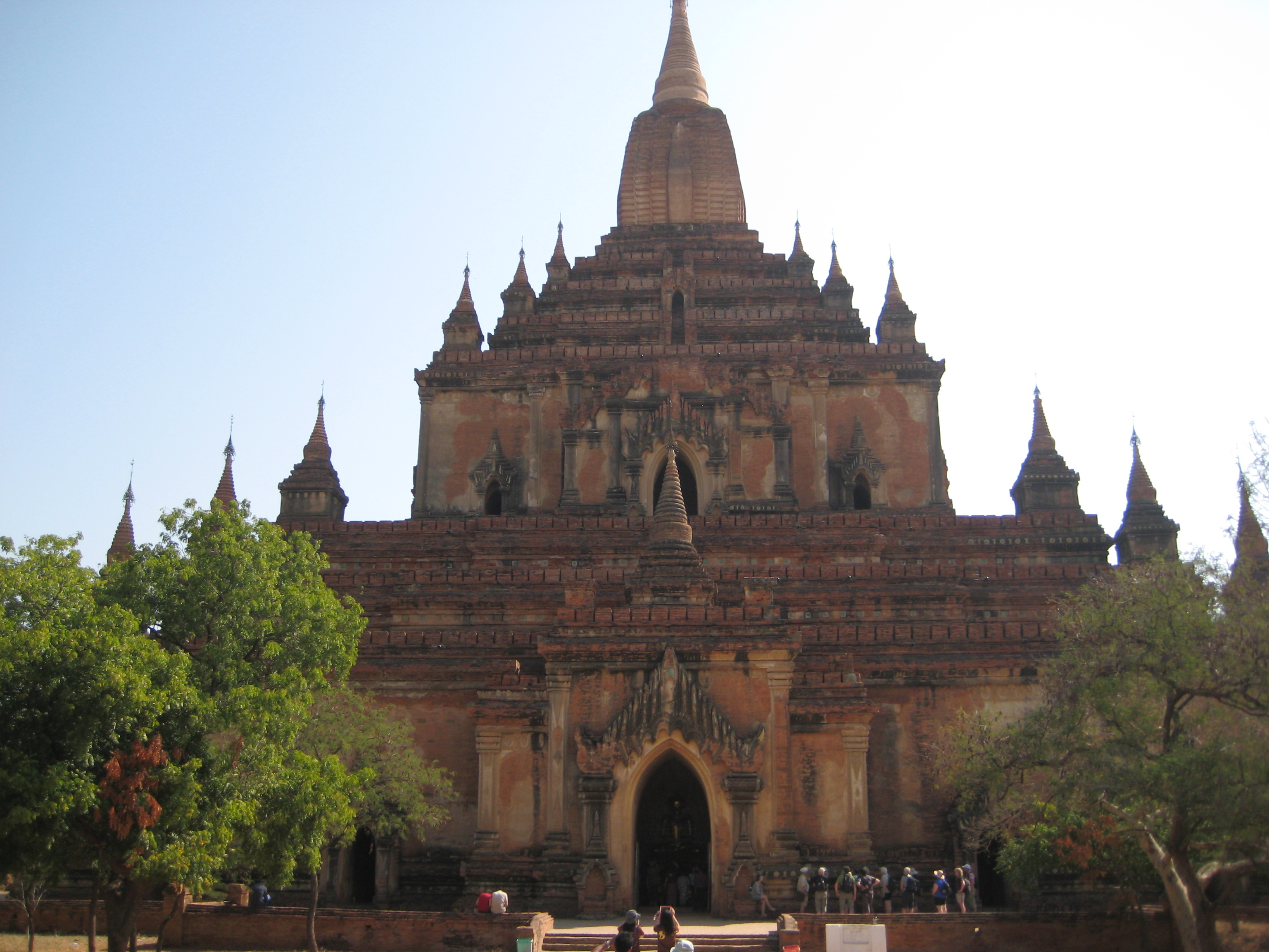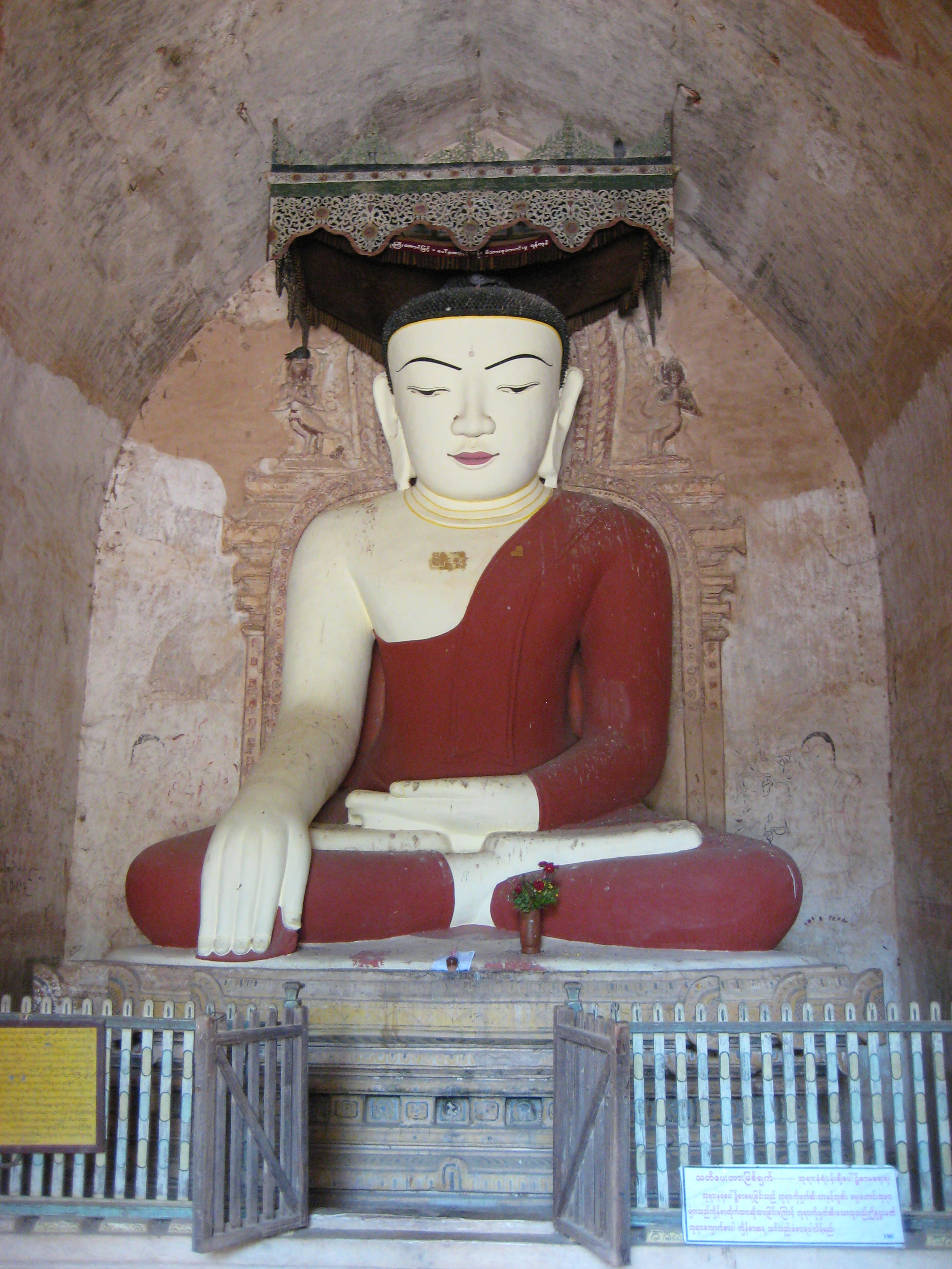 From the Sulaimani temple it was just a hop, skip & a jump over to the Dhammayangyi temple (b. 1167). It is the largest and widest temple in Bagan and was built by King Narathu to atone for his sins for killing his father and brother in order to gain the throne. Upon the death of the king the temple was bricked up in 1170. Apart from the porches there is only one hole you can see through into the inner temple areas and it is rumoured there is a large collection of undiscovered treasures hidden within. In July 1975, a devastating earthquake hit the Bagan region severely damaging a lot of the temples. Most of them lost their towers but a large number have been restored. Here they have not been able to restored the temple towers as the experts are reluctant to do so without being able to access the inner sanctum (which is bricked up) to assess if the structure can bear the load. So far, the state and the Buddhist leaders will not allow it.