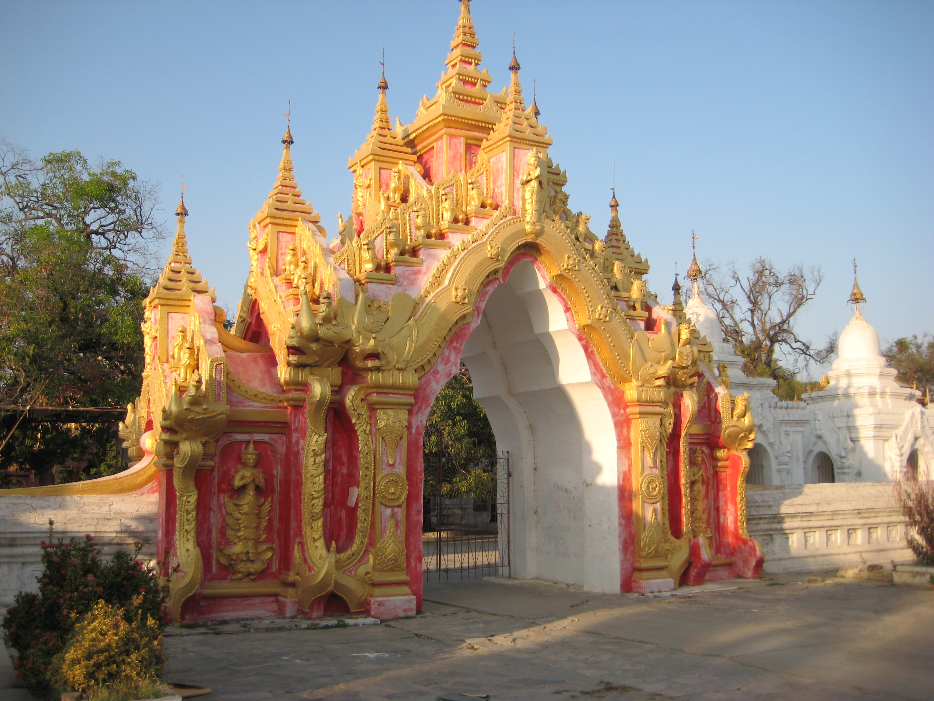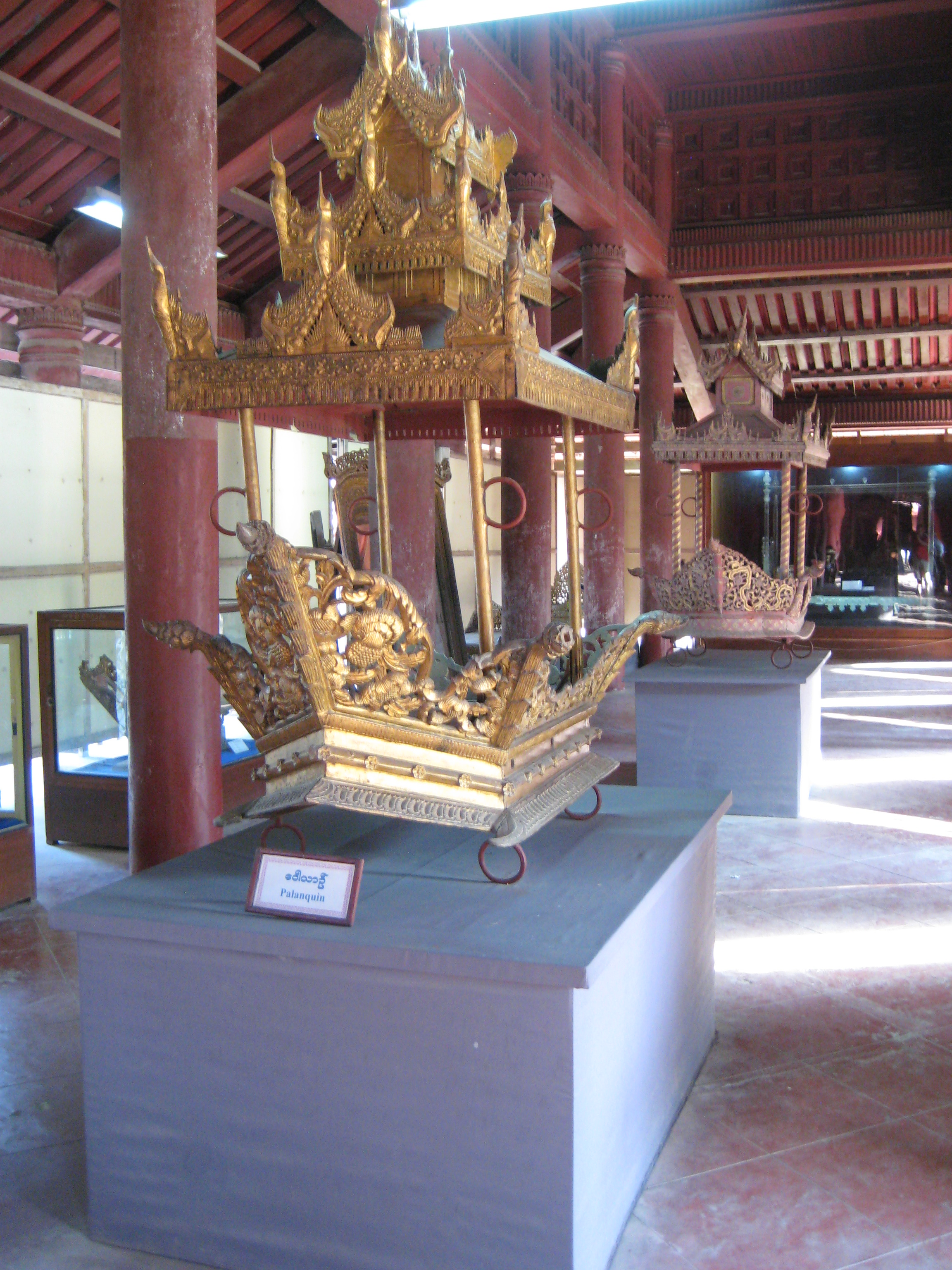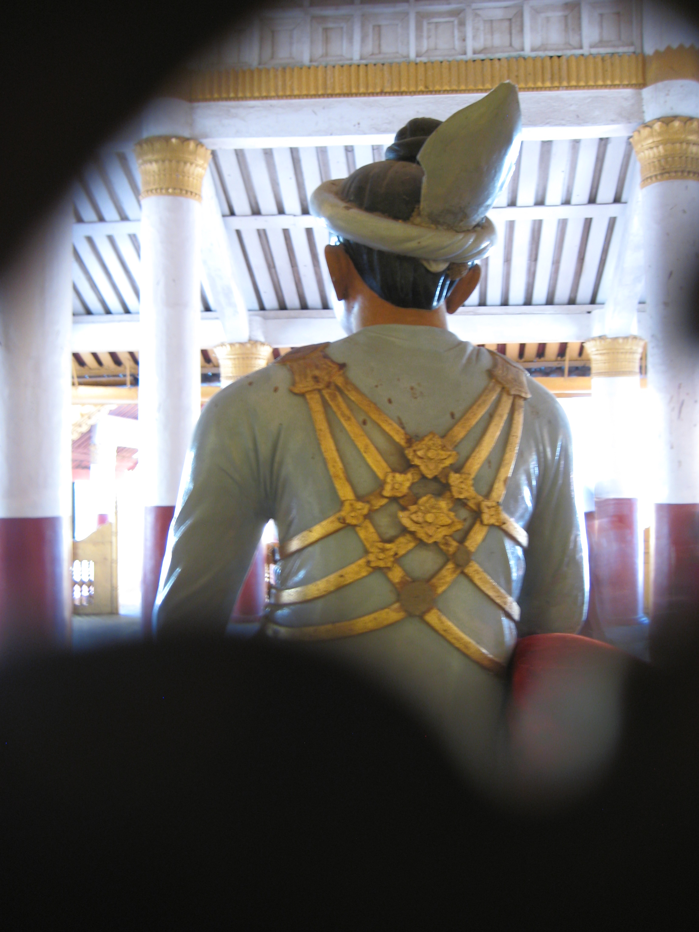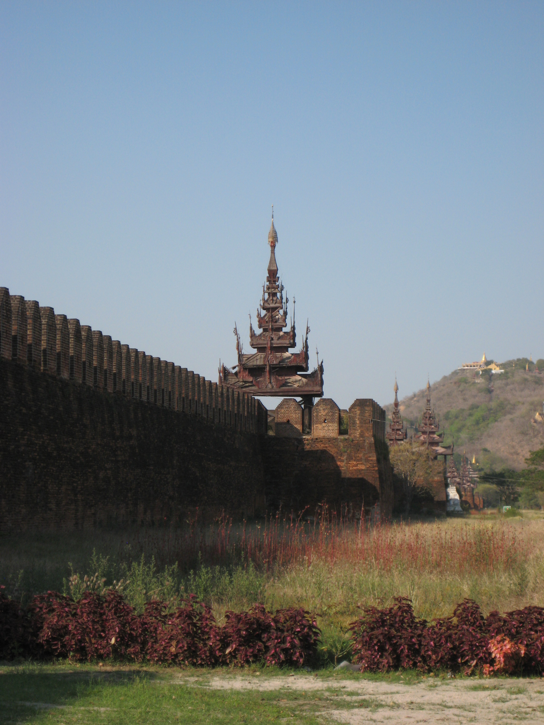 After having seeing my fill of exercise for the day, it was time to hop into my chauffeur-driven limo and off to the Mya Nan San Kyaw, the Royal Palace of Mandalay. The palace is a square 2 km x 2km, surrounded by a moat and built by King Mindon in the mid 1800s. It was home to the last Burmese King (King Thibaw) before he was routed by the British in 1885. Barely finished before it was lost and most of its artifacts were looted and are now in the V & A Museum in London. With its lavish teak pavilions covered in gold leaf and the beautiful glass palace (interior covered with glass mosaic) at the centre containing the Bee Throne, it unfortunately is all a facade. It was burnt down during the British-Japanese conflicts of the WWII, however, it has been faithfully restored although I wouldn’t know the difference.