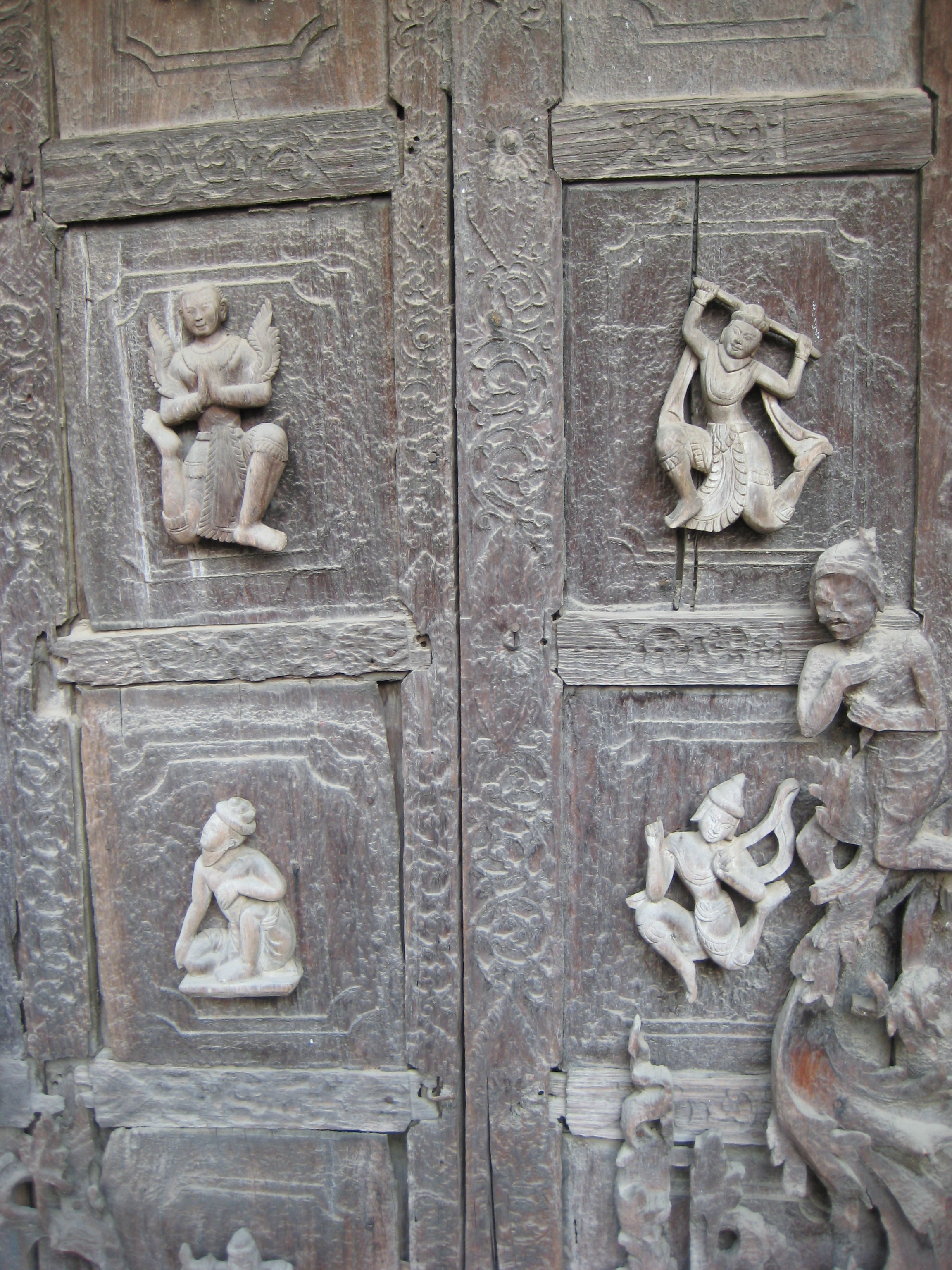 First stop on the way from the palace to the top of Mandalay Hill – Shwenandaw Monastery. It is actually a former apartment from the palace occupied by King Mindon but his son King Thibaw believed it was haunted by his father so had it moved and used it to create a monastery. Shwenandaw Monastery is the only remaining original structure today of the Royal palace before the fire of WWII. Beautiful teak carvings emblazon the entire building.