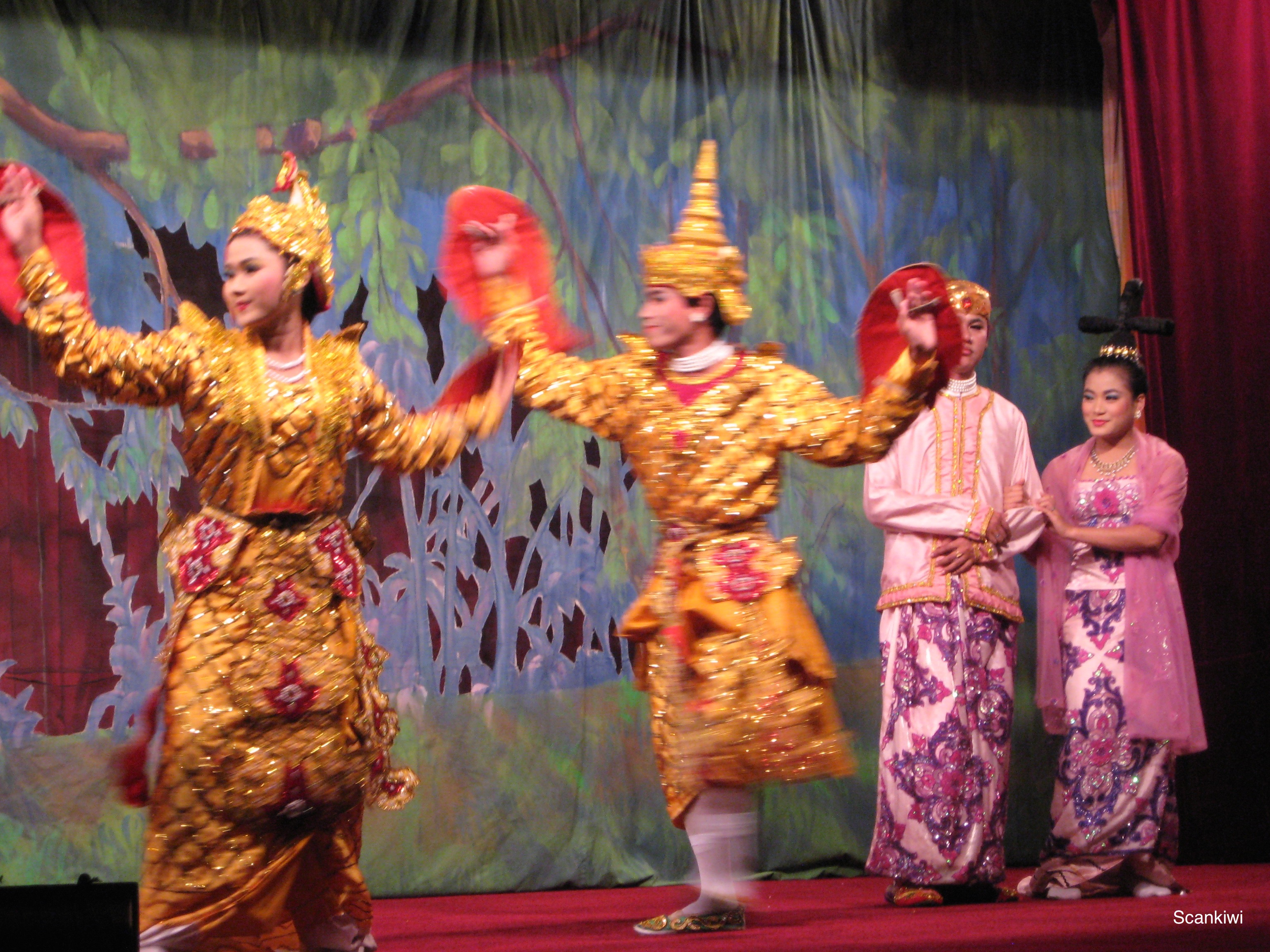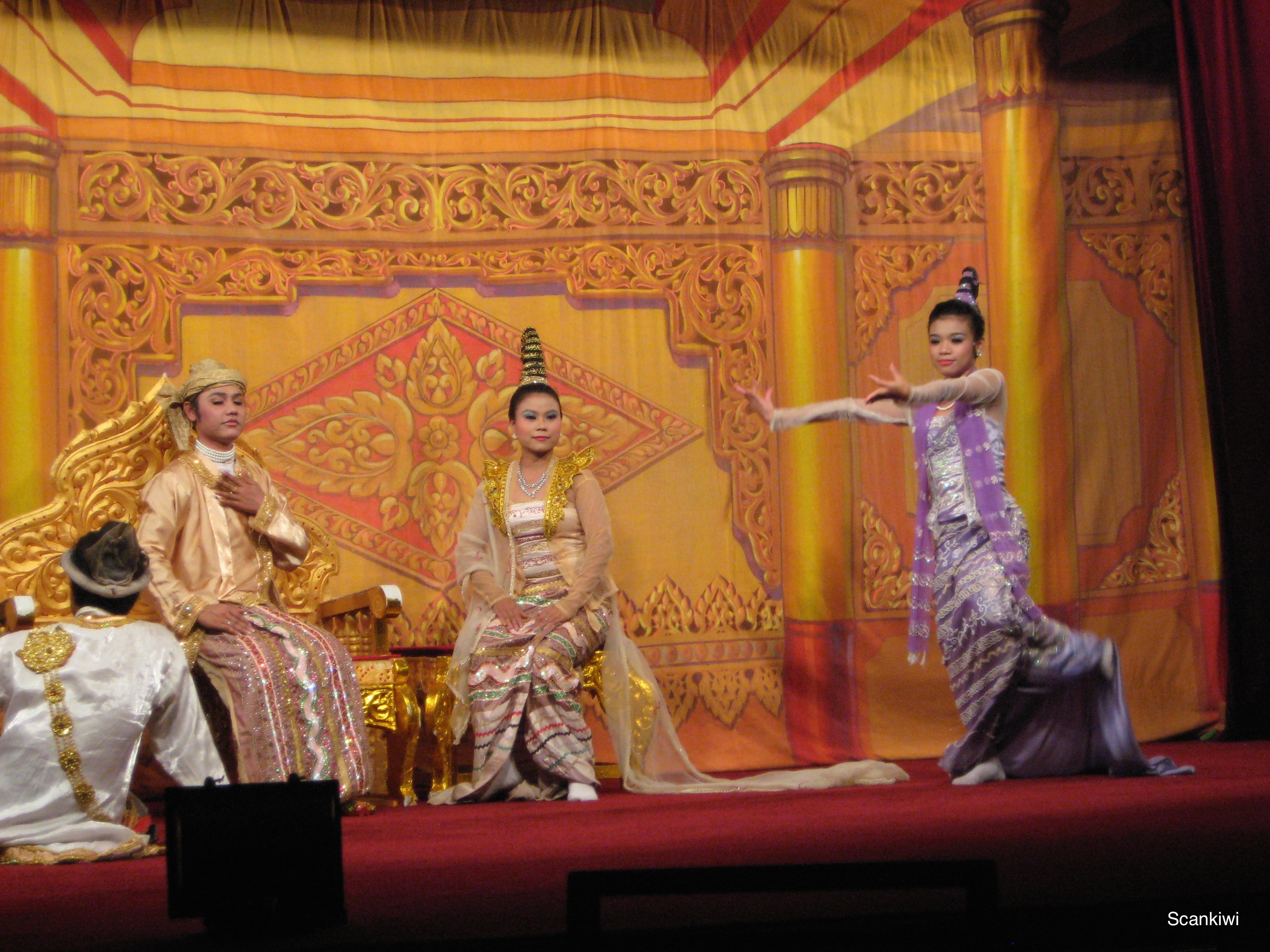 Suitably wowed we left the Schwedagon and headed back down the hill to the lake again and the Karaweik floating Palace where my travel agent for Cambodia & Myanmar invited me to an extravagant multi-course dinner as a thank you for using their agency. Dinner gave a chance to sample the Myanmarian cuisine and one such dish I fastened upon was Mont Pyar Thatel, a sweet crispy Burmese pancake filled with beans and shredded coconut. During dinner we were suitably entertained by diverse traditional Myanmarian cultural acts finished off by a large elephant wandering between the tables garnering tips to for the entertainers.