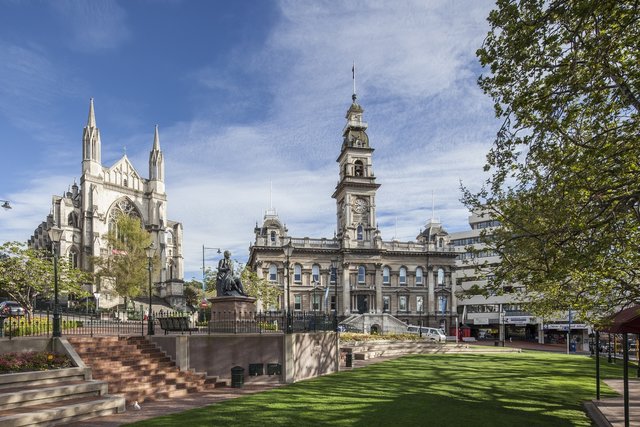 The Octagon with St. Pauls Cathedral and the Town Hall, Dunedin