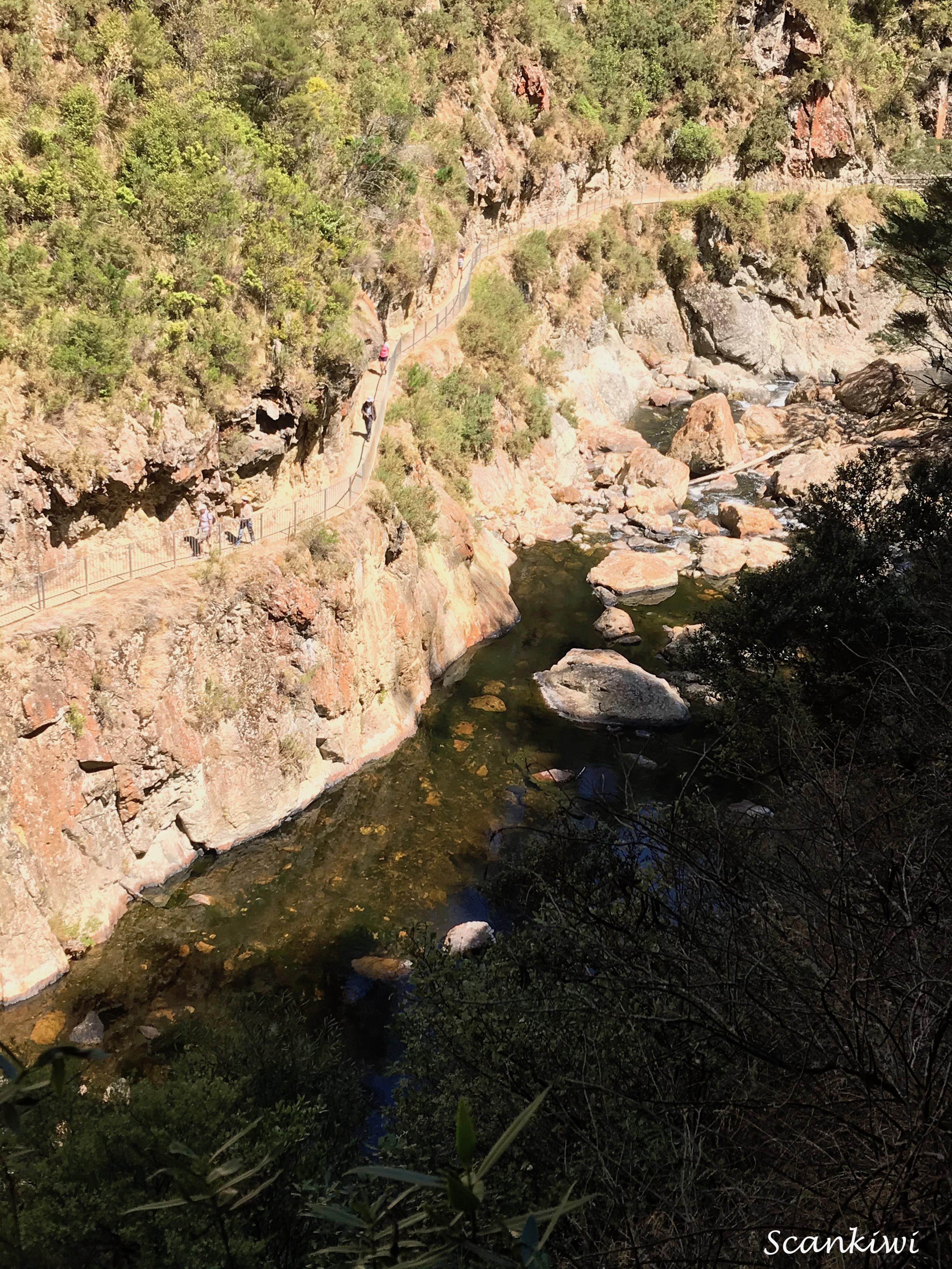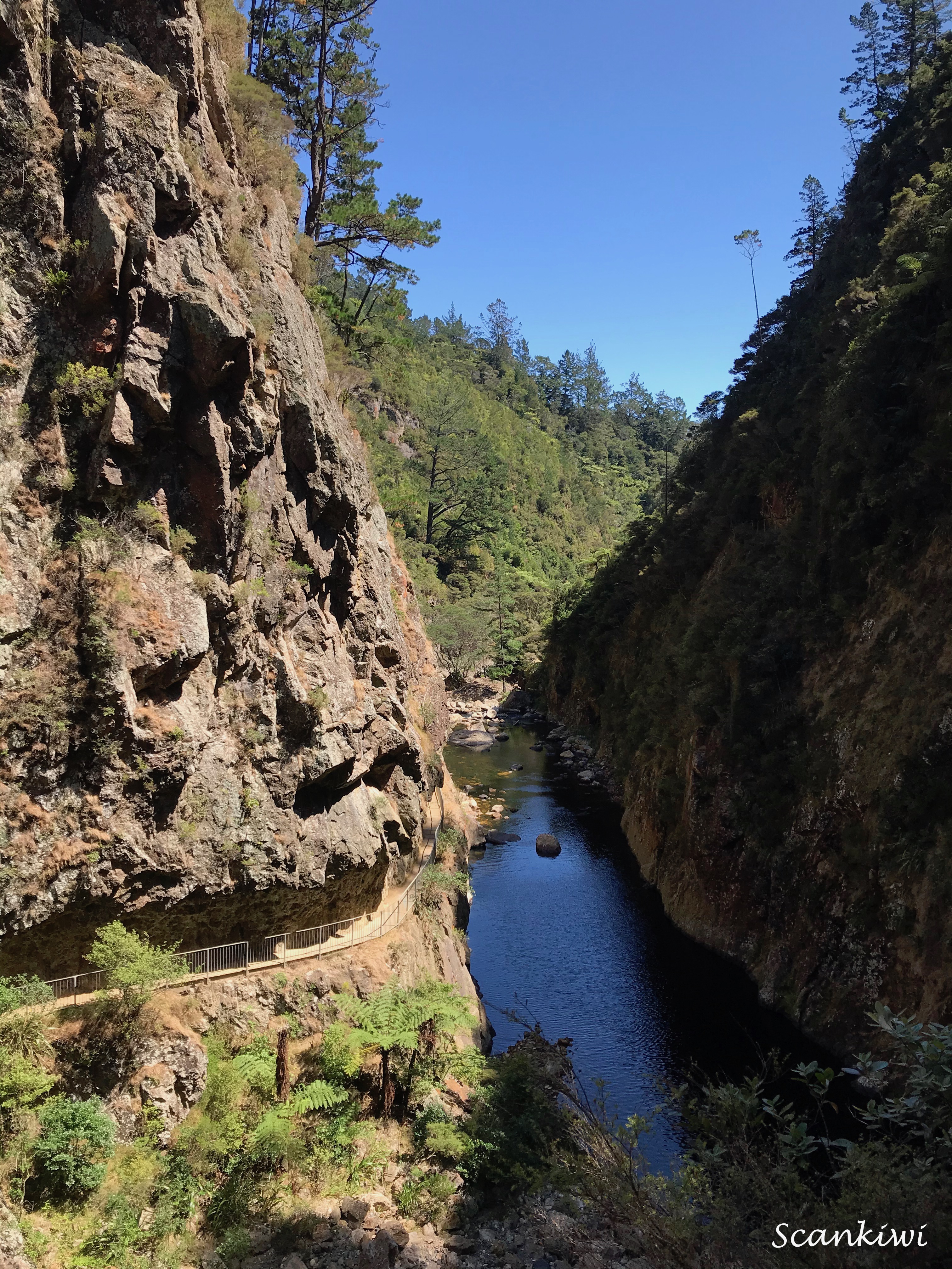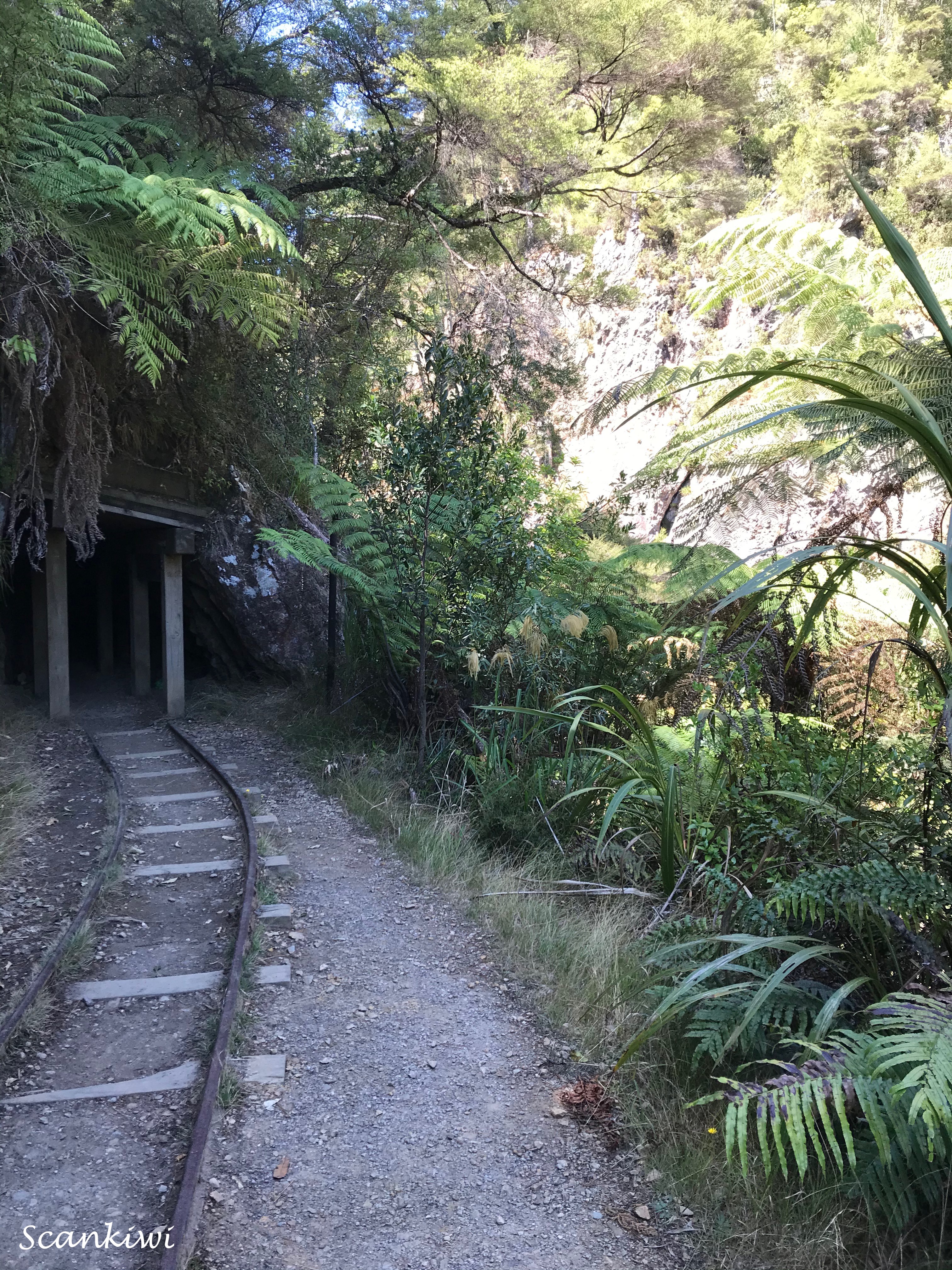 From Paeroa I turned eastward towards the Bay of Plenty and the Karangahake Gorge – a sharply winding canyon formed by the Ohinemuri River and a nationally significant gold heritage site. The Karangahake Gorge was once a maze of bridges, tramways, water races and stamping batteries. The remains of the Talisman, Crown and Woodstock stamping batteries can be found at the lower end of the gorge, and are some of the most significant reminders of the time. Their location at the confluence of the Waitawheta River and the Ohinemuri River was chosen to make use of the available water power of the rivers to drive the batteries. Mining at the batteries occurred roughly from the 1880s to 1950s, with the most productive years around the turn of the century when the area produced 60 percent of the total gold from New Zealand. The batteries were used to release the the gold contained within the quartz by crushing the ore obtained from the tunnels in the steep mountainsides of the Waitawheta Gorge. Erected in 1897 to crush quartz, the Victoria Battery was considered the largest and most advanced facility of its type in New Zealand. The path follows the route of a bush tramway and passes by “windows” in the cliff face at the end of mining tunnels, which were used to tip the tailings down into the Waitawheta Gorge. In March 1875, opened a canvas tent town which grew to a population of around 1 600 people with about 20 stores and grog shops. The heavy machinery required for the hard quartz mining had to be brought via the Waihou River and up to Paeroa. The river was the only highway and hence Paeroa became a thriving transport and distribution centre for the goldfield.
