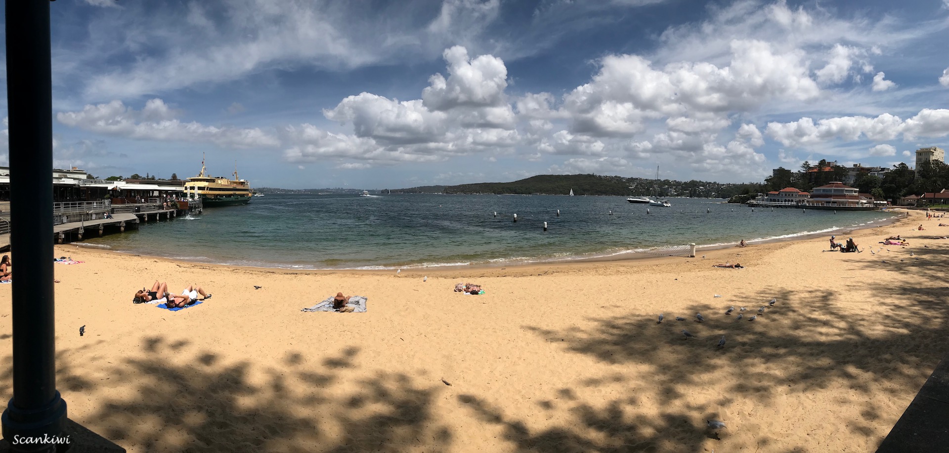 Manly is located on the neck of a the spit leading to North Head. Manly was named by Captain Arthur Phillip after meeting the indigenous people living there and stating that “their confidence and manly behaviour made me give the name of Manly Cove to this place”. From Manly wharf you can traverse the spit along the the shopping precinct “The Corse” and 5 minutes later you are on the beach among the Manly men 🙂 with its yellow sand and the blue Pacific Ocean. The area is a popular tourist destination so the beach is well populated. To be honest I preferred the beach back on the harbour side of the spit in Manly Cove. Quiet, relaxed and less hysterical and just as picturesque.
