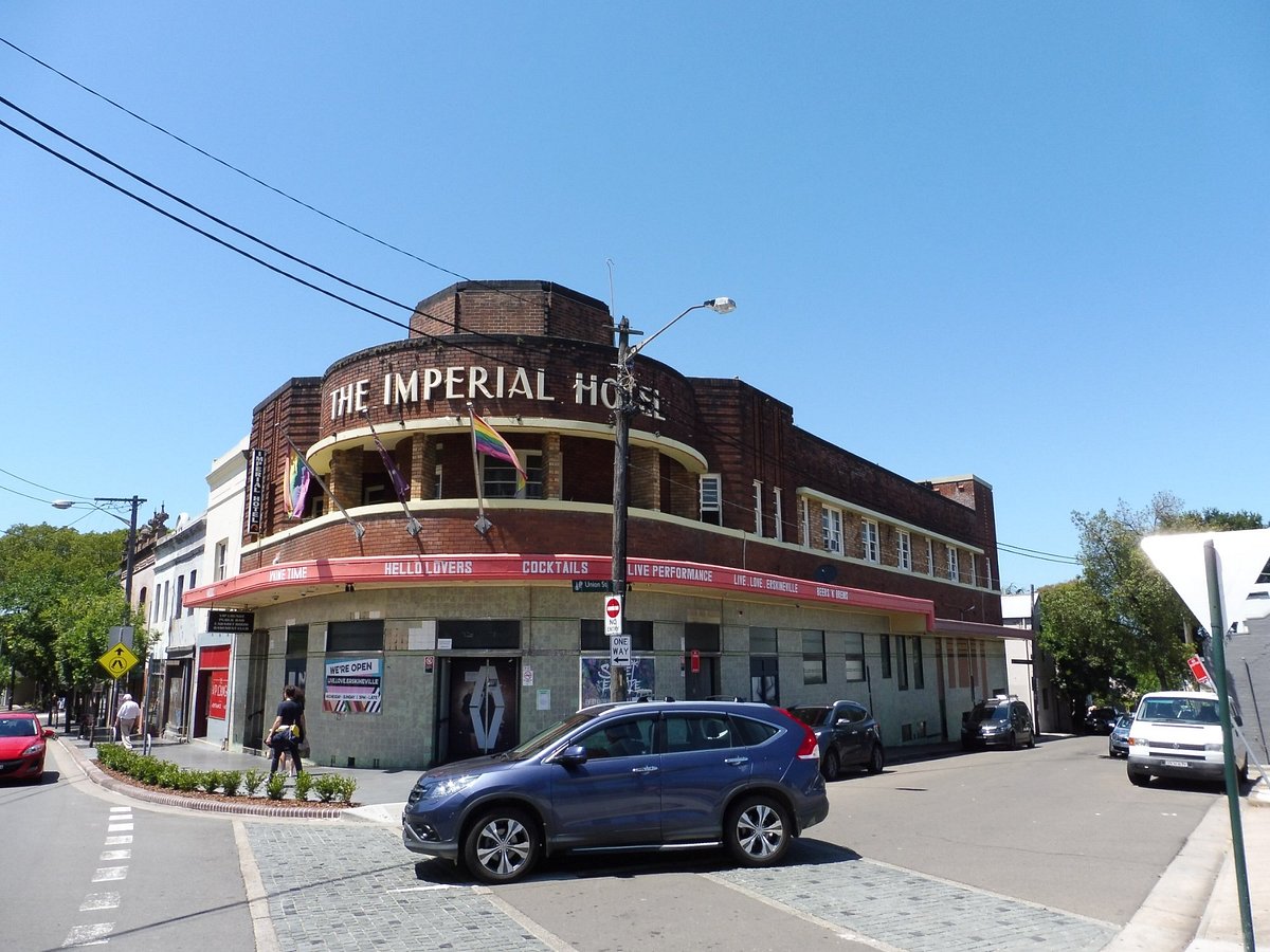 One of the exploratory trips I made was to test the Sydney transport system and take myself from Enmore to Manly, a distance 20 km. A bus, a train & a ferry, and 70 minutes later I was there and all for 8 dollars. The trip alone was worth it. A bus trip on a sunny day through Enmore’s & Erskineville’s stunning Victorian architecture before arriving outside the Imperial Hotel to catch a train from Erskineville station. Now why should I mention this particular hotel? Well, this Art Deco Hotel from the 1940s has had a chequered history. From its immigrant patrons of yesteryear to the dark grungy debauched & brutal drag scene of the 1980s, and then being lifted from a rough nicotine soak seedy dive to a modern vibrant gem in the LBGT life of Sydney. All because of a film, “Priscilla Queen of the Desert”, loosely based on some of the hotel’s more colourful drag artistes such as Mitzi MacIntosh and Cindy Pastel. One of my all time favourite Aussie films. The opening & closing scenes and the bus departure for the desert are all filmed here, and I accidentally stumbled on it when alighting from a bus for a departing train. I was able to check one off the gay to-do-list sights in Sydney. The city was cloaked in the Pride flag colours as I had arrived in Sydney during Mardi Gras season. While not participating in it as actively as Gustav, it was with pride that I wandered the city awash in a mass of colour celebrating our right to freedom.