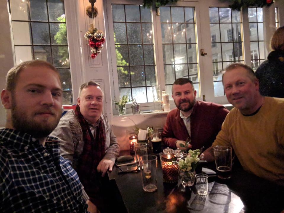 A gathering of friends at the Splendour in the Sun pub in Notting Hill