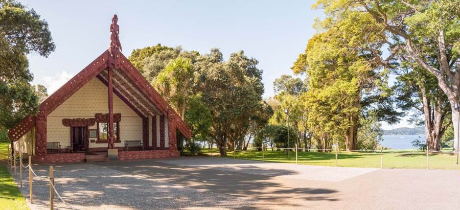 Landing of the whakas (canoes) and haka at Treaty grounds