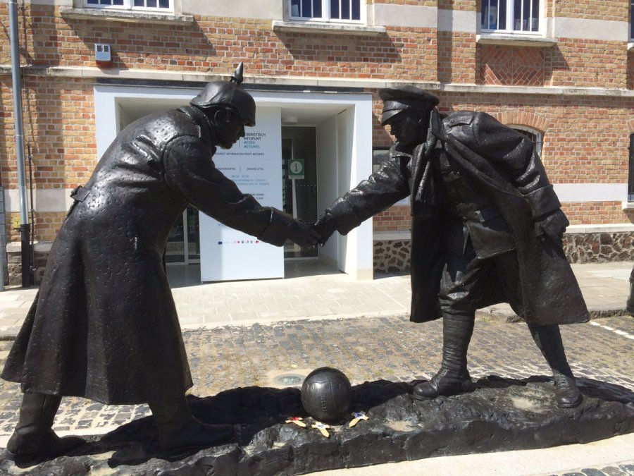 Memorial commemorating the NZ/German Christmas eve meeting 1917, Messines town square