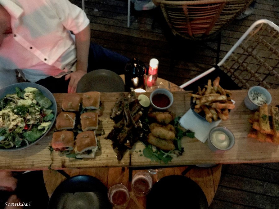 Food on a plank, Dr Rudi’s Rooftop Brewing Co., Auckland NZ