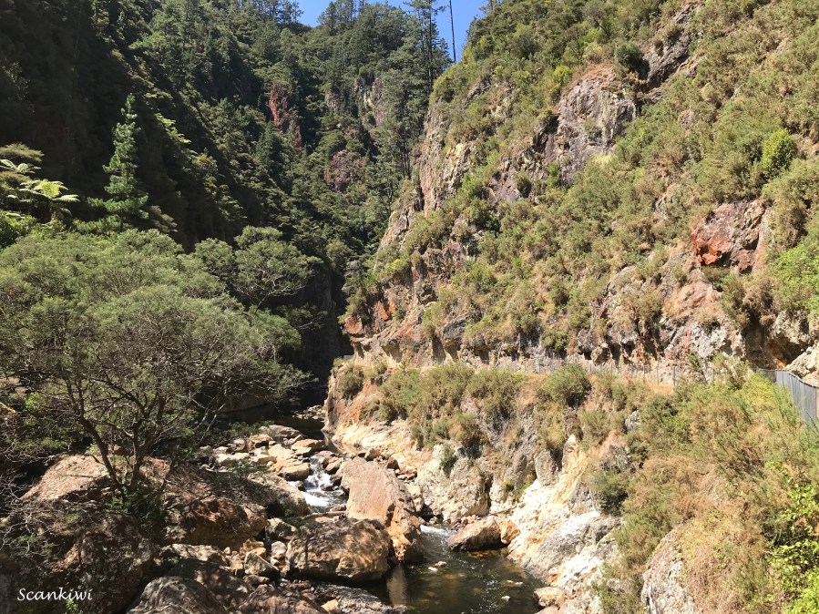 Old tramway hewn from the rock, Waitawheta Gorge, Karangahake