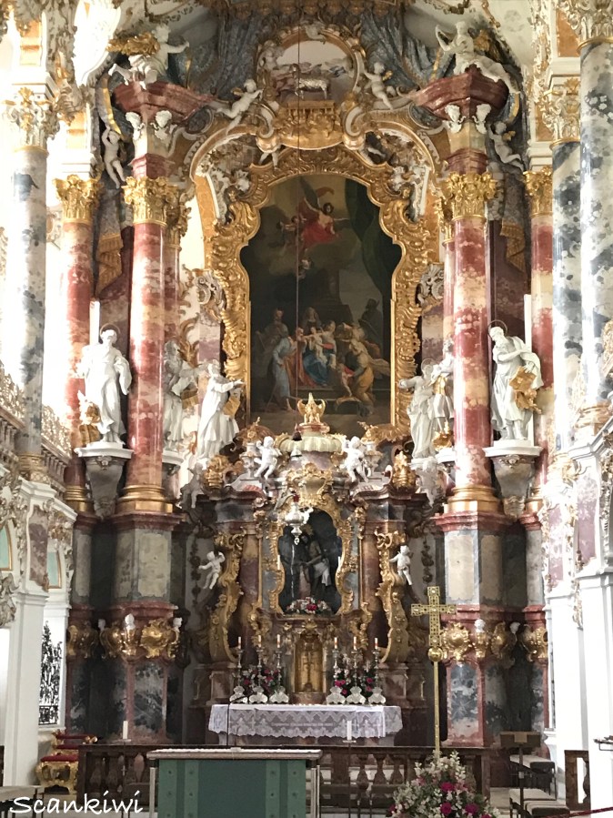 Rocco interior & high altar with the Scourge of Christ statue, Wieskirche