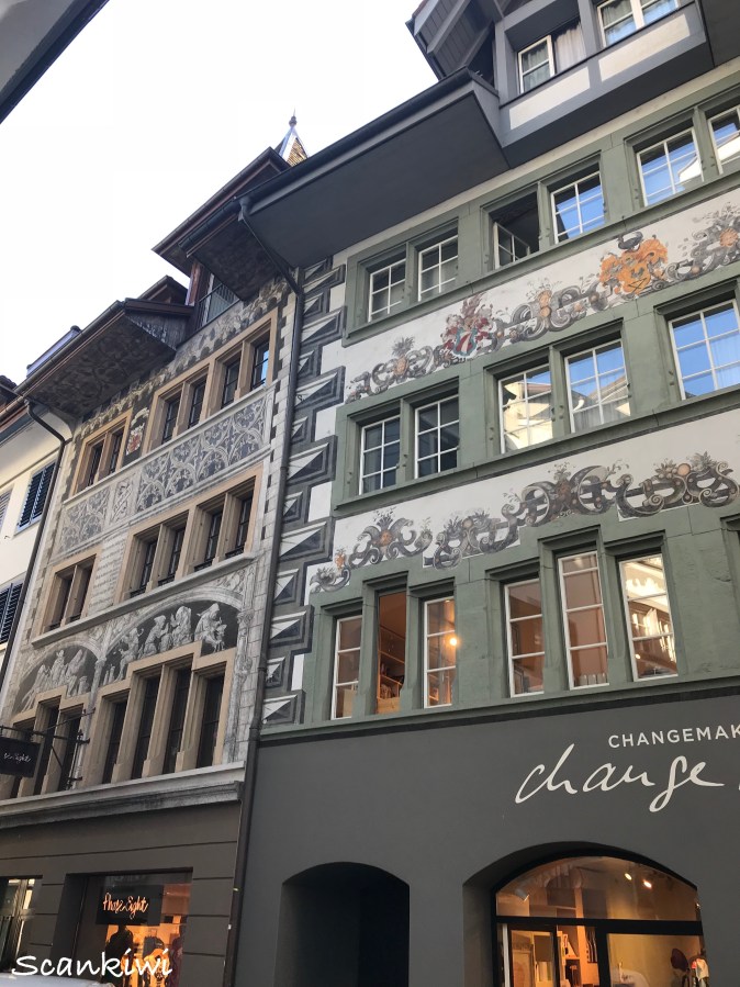 Lüftlmalerei” or facade frescoes; Lucerne, Switzerland