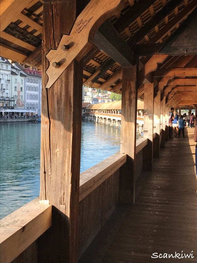 Moi and Kapellbrücke (Chapel Bridge), Lucerne, Switzerland